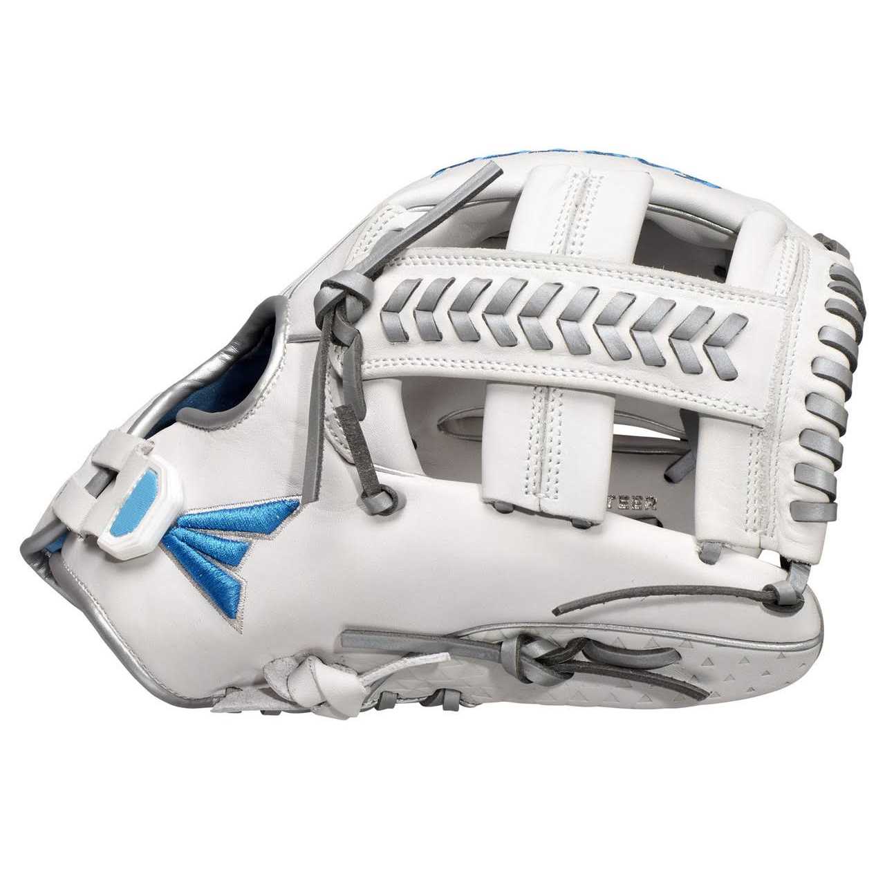 Easton Ghost Nx 11.75-Inch Fastpitch Glove – E00683114 Easton’s Ghost series is a symbol of elite fastpitch play. The Ghost NX 11.75-inch Fastpitch Pitcher/Outfield glove fits right in. These gloves were crafted in gameday-specific patterns designed for smaller hands and perfectly suited to the fastpitch game. On the outside, the Game Ready Diamond Pro Steer leather and Flex Notch closure system make this glove super soft and easy to handle right away. The Quantum Closure System on the glove back ensures a perfect fit for every player, and the interior Ax Suede microfiber lining creates unmatched comfort and durability. Also, the striking white-and-blue colorway and professional-grade silver metallic rawhide lace are sure to turn heads. Hit the field with the Ghost NX 11.75-inch Fastpitch Pitcher/Outfield Glove and master the softball diamond. Get yours today!