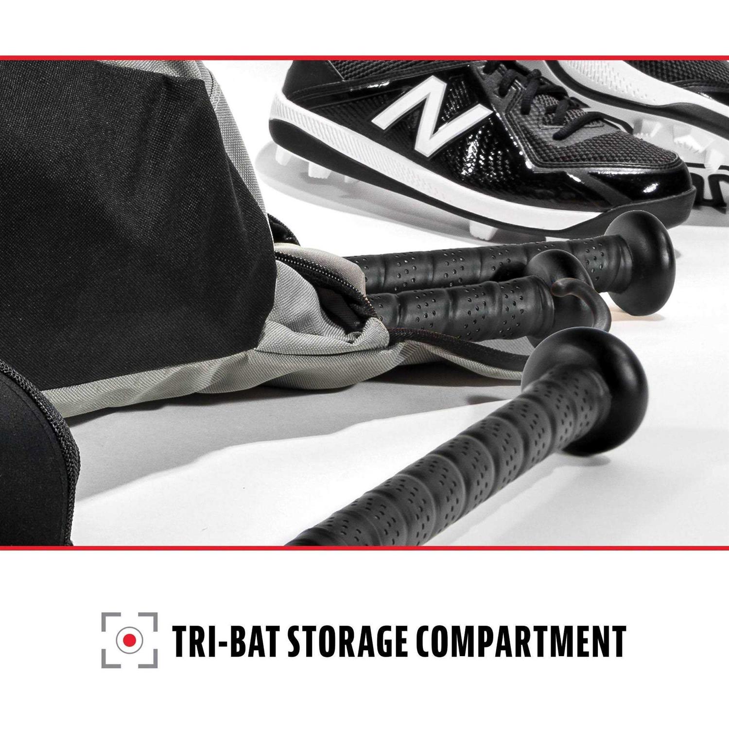 • TRI BAT STORAGE The bat storage compartment is large enough to hold (3) young sized bats at a time