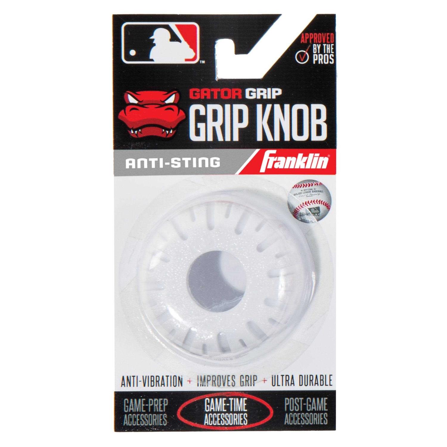 Reduce the sting of bat vibration with Franklin Sports MLB Gator Grip Knob! Ultra-durable and flexible silicon construction absorbs shock after contact to help eliminate hand sting while also improving your grip on the bat handle. When sliding the Grip Knob over the knob of your bat, make sure hand side (narrower opening) slides onto bat first. This will secure your Grip Knob through practice or competition.