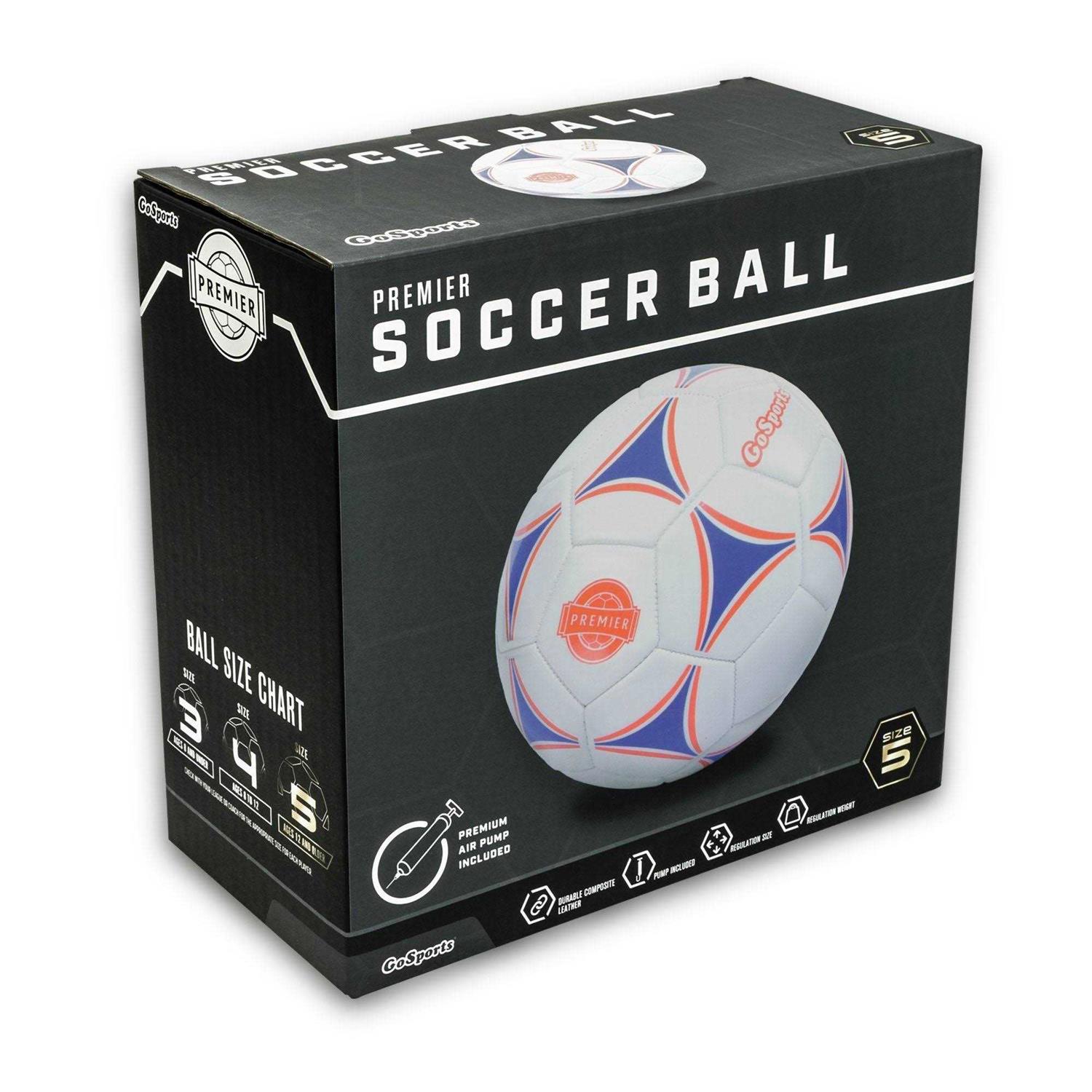 Balls by GoSports. Details:When you need a ball that lives up to the demands of training, the GoSports Premier Soccer Ball is your best bet. The machine stitched construction reinforces the ball for sustained performance and long-lasting durability. Take it from practice, to the game, to scrimmages back home. The GoSports Premier Soccer Ball utilizes a synthetic leather cover to resist abrasions from intense use while still providing an optimum feel during footwork. After it has gone through the weekly grind, rest assured that the included premium inflation pump will let you maintain correct pressure to ensure longevity of the ball. Now there’s no reason to eat the cost of big box store prices when you have the performance and durability of the GoSports Premier Soccer Ball at a bargain price.