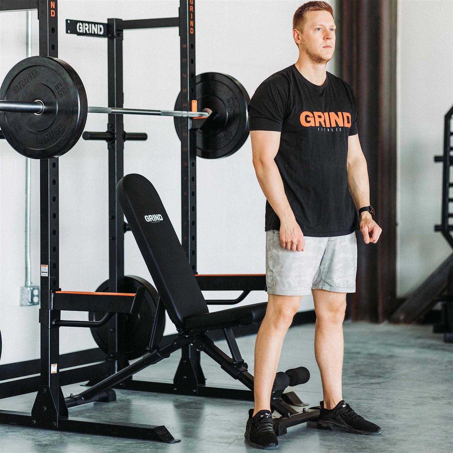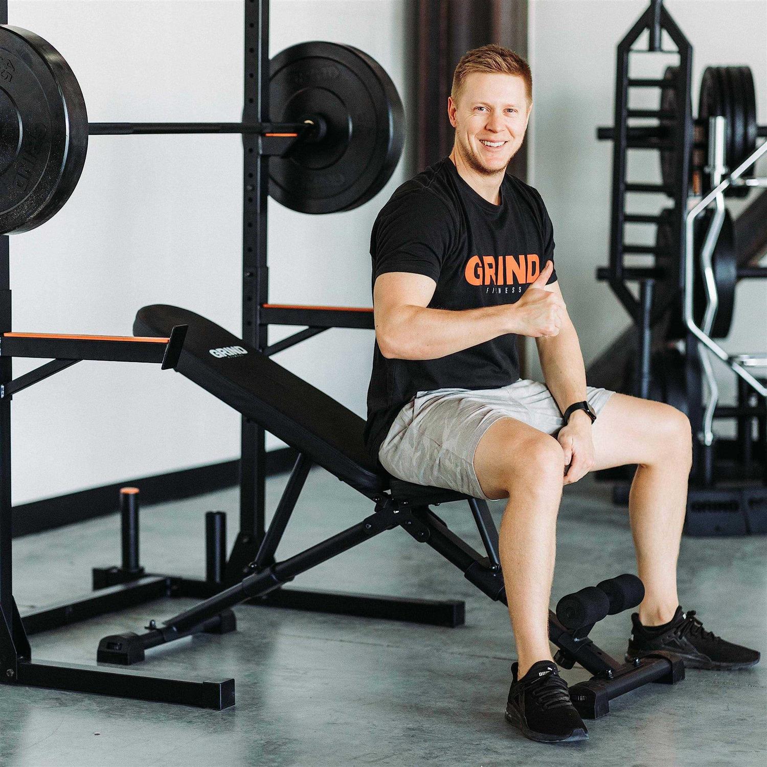 GRIND Fitness Adjustable Weight Bench Foldable Workout Bench Full Body Strength Training Incline Decline Utility Bench Home Gym Multi-position