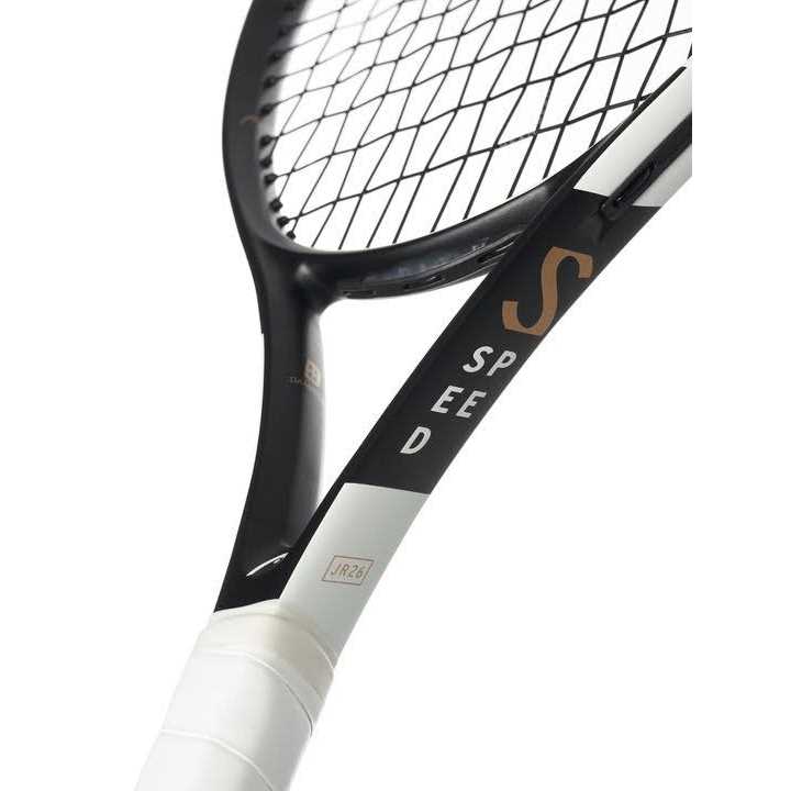 Great for having fun and gaining confidence on the court, the Head IG Speed 26 junior tennis racket is designed for kids aged 9-11. Ideal as a first racket, the IG Speed 26 is fast, lightweight, and manoeuvrable thanks to its 250g (8.8oz) frame and a head light balance. Control and easy targeting come from a 100in2 (645cm2) head, whilst Innegra technology delivers improved shock absorption and helps to stabilise the frame. The racket boasts DampPlus technology for arm-friendly comfort and a better feel. Additionally, it comes strung with a durable synthetic gut string in an open 16×19 string pattern for more power and spin. An included full-length cover protects the racket between uses.