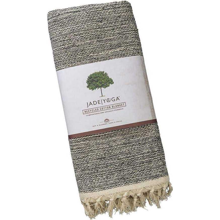 JadeYoga Recycled Cotton Yoga Blanket- Black