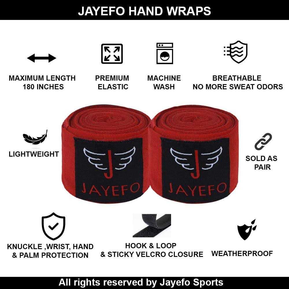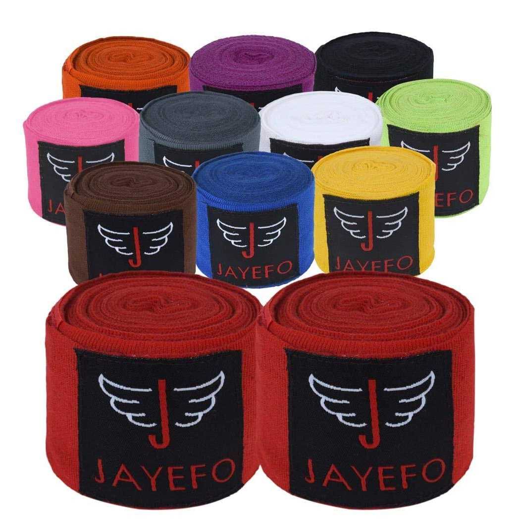 Ultimate Hand Protection: Elevate your training game with our top-notch boxing wraps! Crafted for your safety, these wrist wraps offer unbeatable support and protection for your hands and wrists during intense workouts and sparring sessions. Our Hand Wraps are the ultimate accessory to keep your hands in peak condition. Durable and Breathable: Our Hand Wraps are constructed with a high-quality materials that have a perfect balance between durability and breathability. The premium cotton-polyester used in wrist wraps for boxing ensures they stand the test of time, while keeping your hands cool and dry. Secure Fit, Every Time: With our boxing hand wraps, you’ll enjoy a secure and comfortable fit every time. The hook-and-loop closure ensures a snug and adjustable fit, allowing you to customize the level of support you need, whether it’s for bag work, boxing, or mixed martial arts. That’s why our boxing wrist wraps are designed for easy cleaning and maintenance. Simply toss handwraps in the water after a sweaty session, and they’ll be fresh and ready for your next training session. Trusted Brand: As a trusted and reputable brand in the sports industry, you can trust our boxing hand wraps for mens to help you achieve your training goals. In case of any query related to our Jayefo wrist wraps do not hesitate to contact. hello