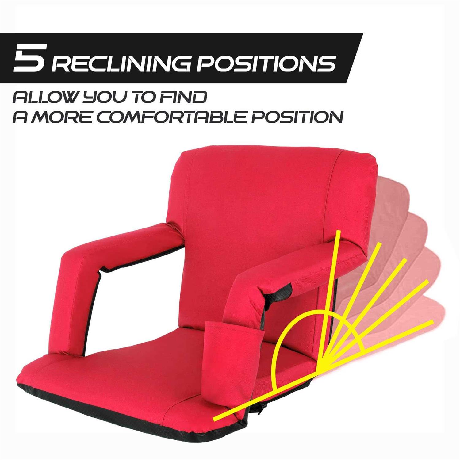 Lemy 5 Reclining Positions Adjustable Stadium Seat for Bleachers Portable Water Resistant Stadium Chair with Back/Arms/Cushion for Outdoor or Indoor