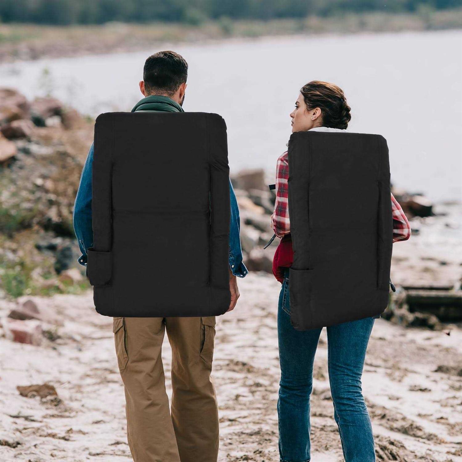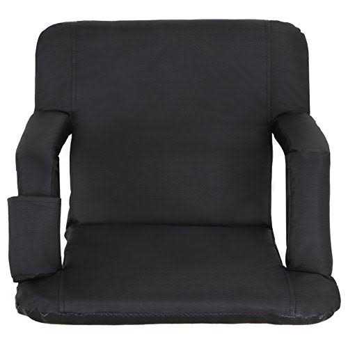 ? Ideal Choice? Perfect for all your needs, ideal choice for whatever camping, stadium, outdoor concerts, sporting events, beach; Made you feel comfortable instead of seating on hard bleachers Durable Material? Made of 420D polyester covered cushion and durable steel frame with inner cotton stuffing; Water resistant PVC no-skid underside will let the seat always stay in place without slipping away Adjustable Position? Enable to adjust to 5 different positions with integrated armrests provide maximum comfort to you; You can adjust the seat to your favourite and most comfortable angle Lightweight&Portable? Only 7.27 lbs weight, adjustable and portable backrest and backpack easy to flat for storage or fold for sitting; Extra storage cup pocket for bottle of water or other things, the armrests’ front pockets can keep your valuables(cellphone, keys, wallet); A zipper pocket for storing extra accessories Dimension? Overall dimensions: 19.5 “(L) x 1.7 “(W) x 31.3 “(H); Comfortable height setting–When the seat is opened, the back is 15.5 inches high, seat position is 16inches deep, the armrests are 8 inches from the top of the seat to the top of the armrest