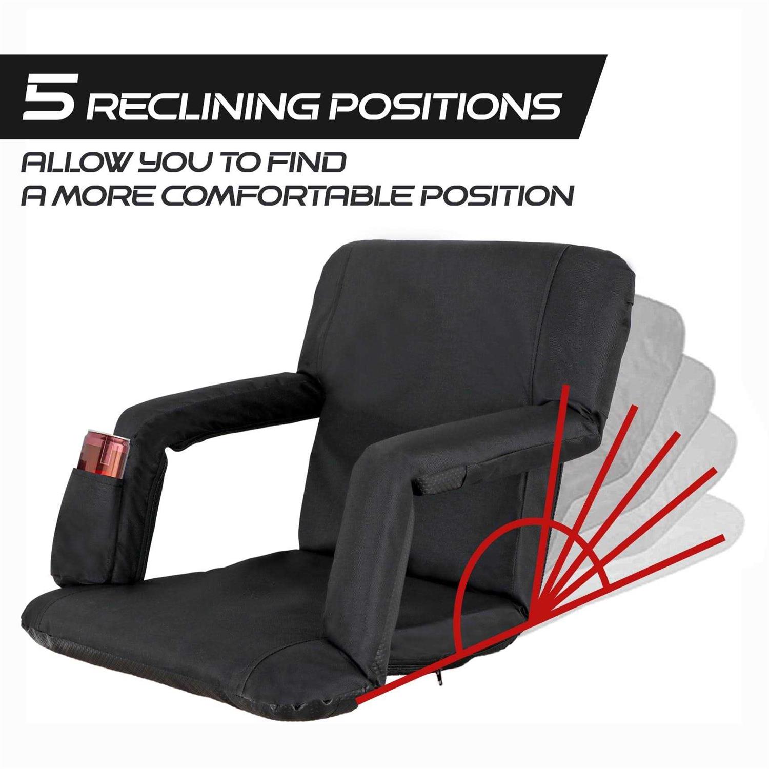 Lemy 5 Reclining Positions Adjustable Stadium Seat for Bleachers Portable Water Resistant Stadium Chair with Back/Arms/Cushion for Outdoor or Indoor
