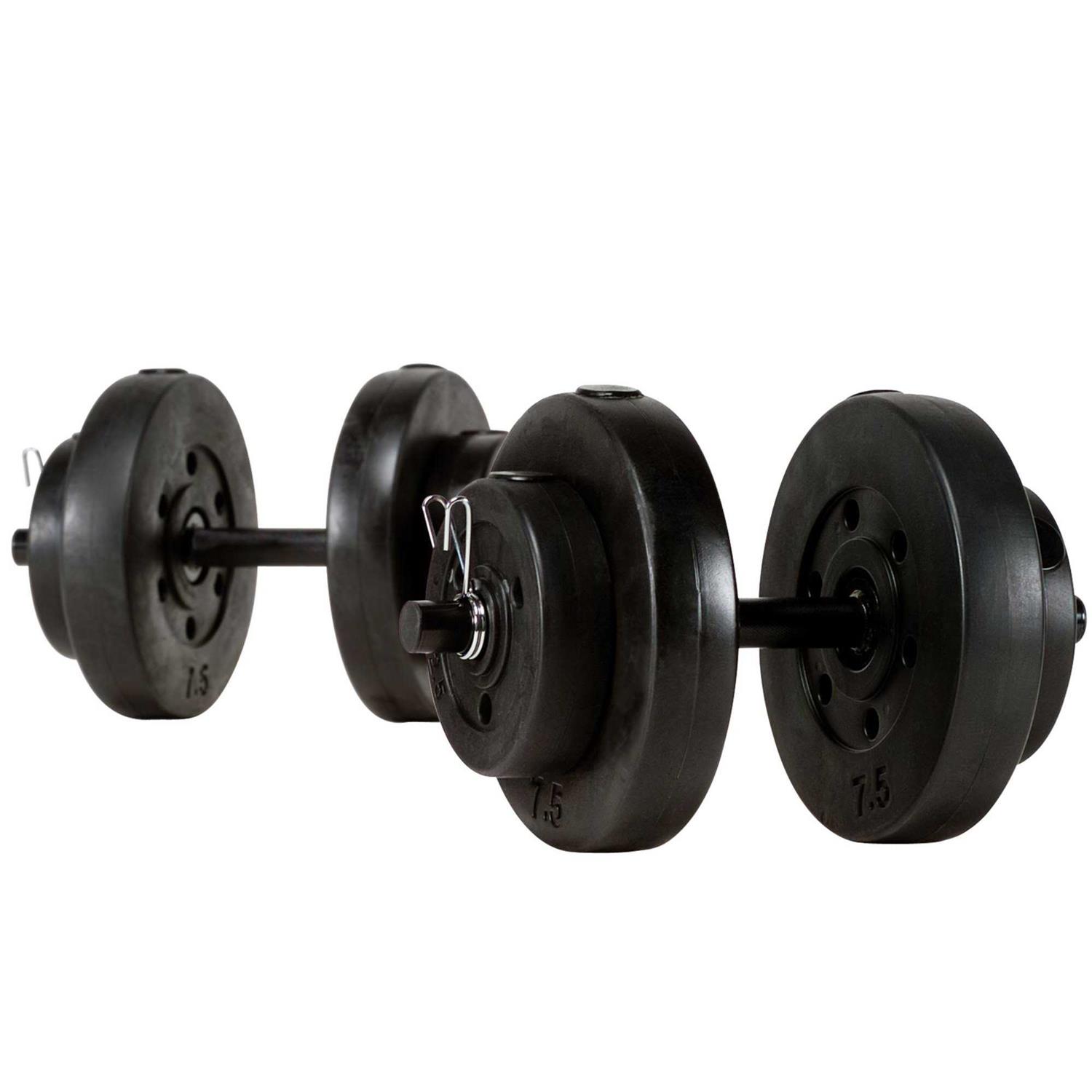 - Set includes: Four 1.1kg plates, four 1.1kg plates and four spring clip collars