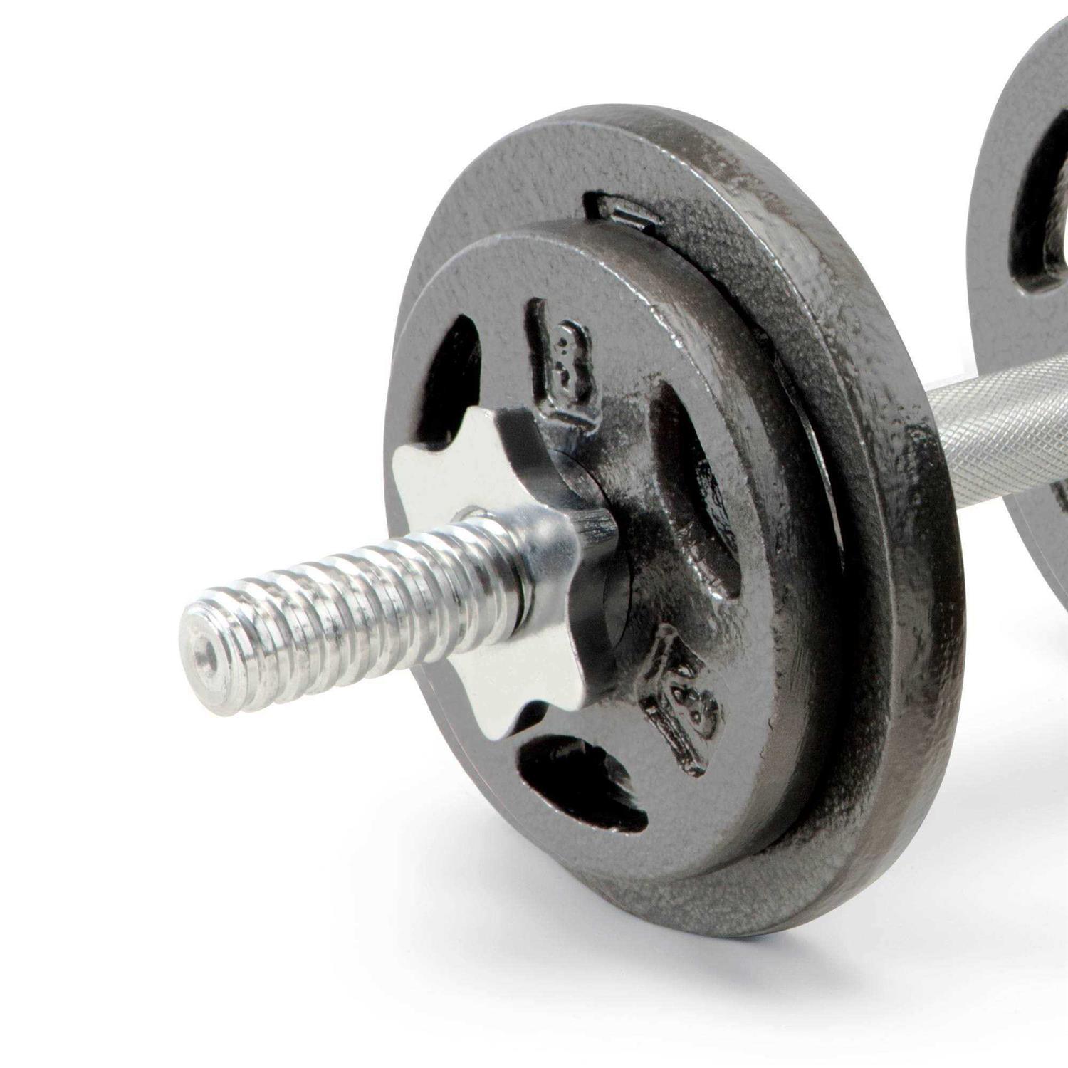 - This workout weight set features a knurled hand grip that’s designed to enhance your hold during lifting.,SPIN LOCK COLLARS.