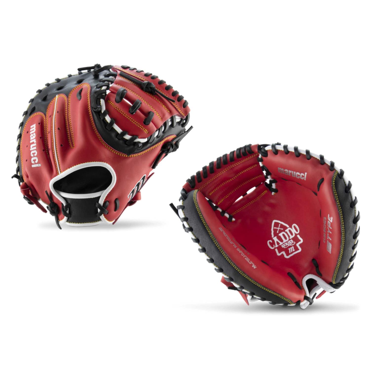 Marucci Caddo 31 inch Youth Baseball Catcher’s Mitt: MFG2CD3100-R/BK Your youth team’s battery needs a glove that they will love from the start. Now with the Marucci Caddo 31 inch Youth Baseball Catcher’s Mitt: MFG2CD3100-R/BK they will love every time they slide their hand in! Mitt Benefits The Marucci Caddo will feature a full-grain cowhide leather shell for a durable youth glove and lightweight panels for a effortless feel on the court. Paired with the EZ Flex notch, it provides an easy closure and enhanced flexibility designed for a youth player. The smooth palm lining with added cushioning will have your player feeling at home once they first slide their hand in. A youth tapered fit for a better-fit for youth players and added fielding control. Have your player make their glove home with a high-density memory foam and will give your young star a personalized fit.