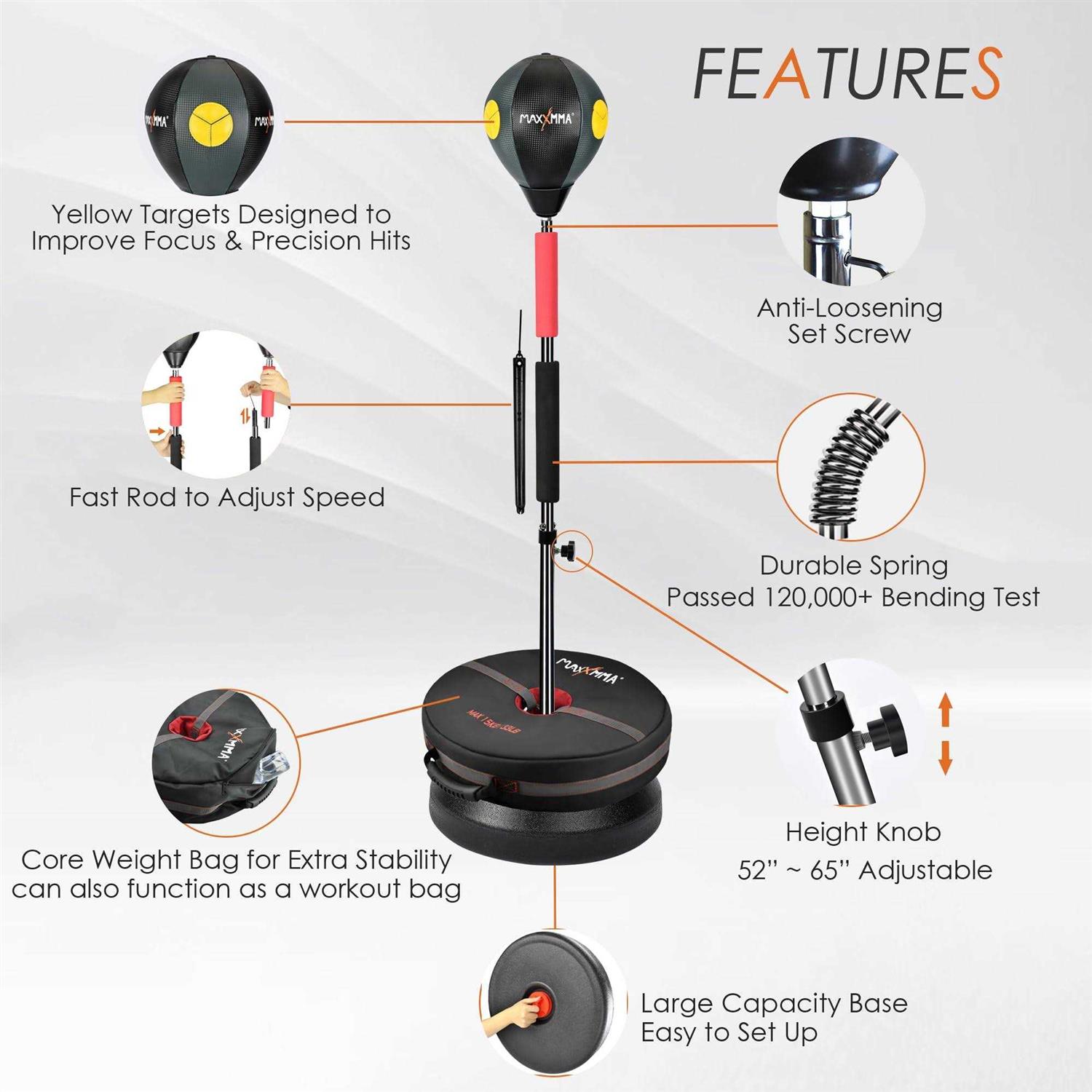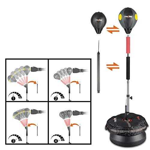 This is a cobra style punching bag that you can do countless Muay Thai exercises, MMA exercises or boxing exercises. Also height adjustable from 52″ to 65″, suitable for different types of people. Weight bag included for extra stability and doubles as a training bag Free 1 year replacement on punching bags.