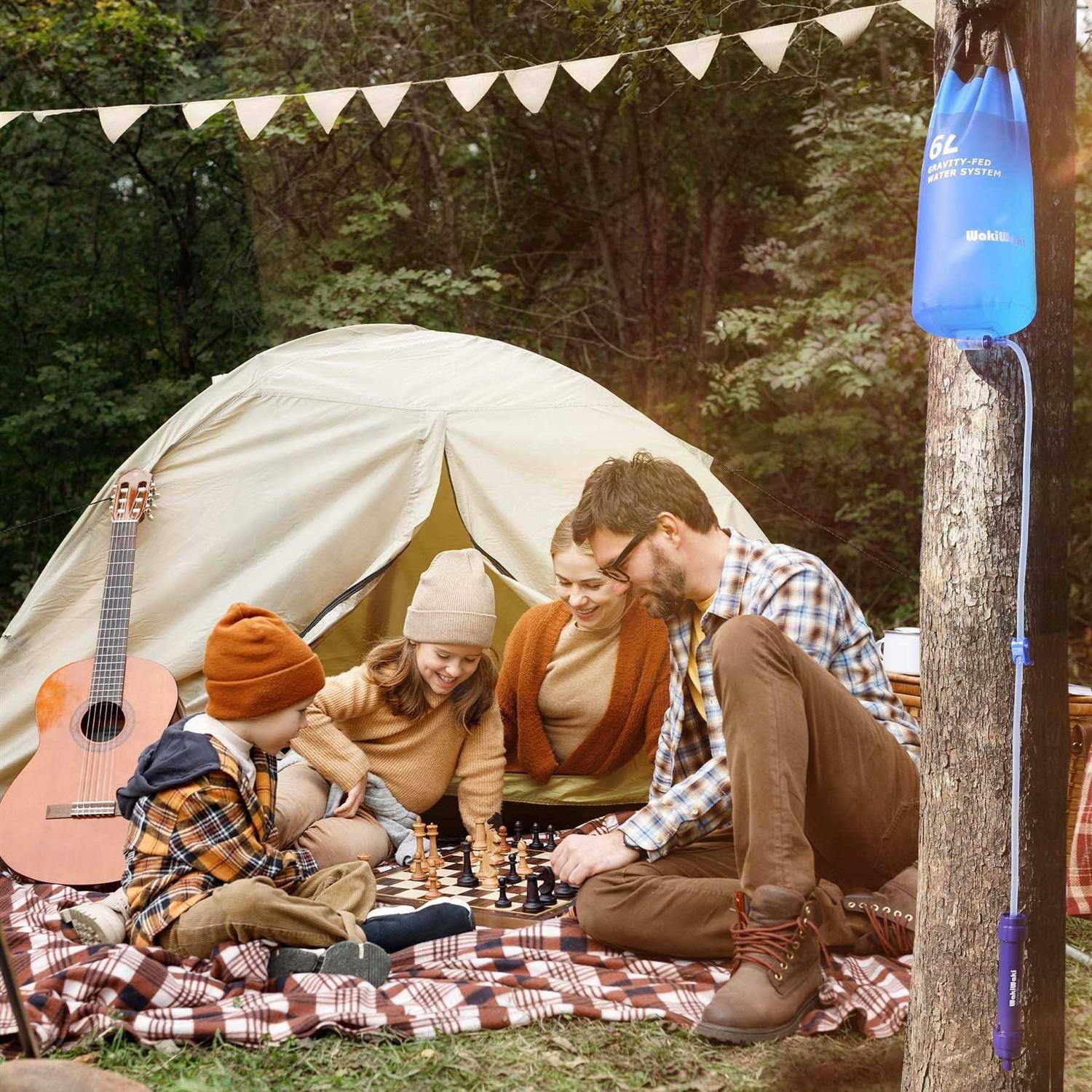 No pumping is required! Just fill and hang WakiWaki 6L water filter bag and let gravity do the work. Our gravity emergency water purification systems make sure you will always have access to enough reliable sources of pure drinking water any time anywhere, especially in an emergency. Equipped with a 0.1-micron hollow fiber ultrafiltration membrane, this gravity camping water filter reduces 99.99999% of escherichia coli, tested by SGS-CSTC Standards Technical Services Co., Ltd.Ningbo Branch (Test Report NBF21-004693-01, Date: 02 Jun 2021), filters up to 5,000 liters outdoors water. Unique detachable and backwash design ensures a long life span of water filter straw, with no need for an extra syringe. As an ideal emergency water filter, WakiWaki gravity-fed water purification system is lightweight and easy to use, suitable for camping, hiking, climbing, travel and survival.