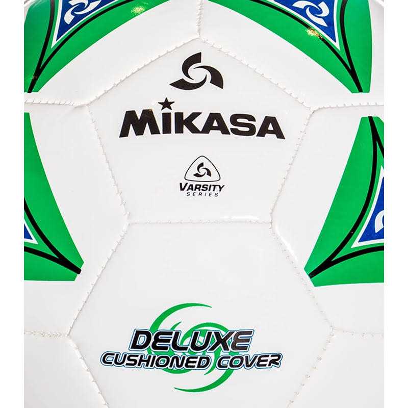 Mikasa White/Green Size 4 Deluxe Cushioned Soccer Ball is a perfect choice for practice or recreational play for ages 8 to 12 years. Ball offers superior durability with a soft feel, featuring deluxe machine stitched cushioned cover. Ball also ensures maximum air retention with its two ply butyl bladder. Measures 25 inches in diameter. Sold individually.