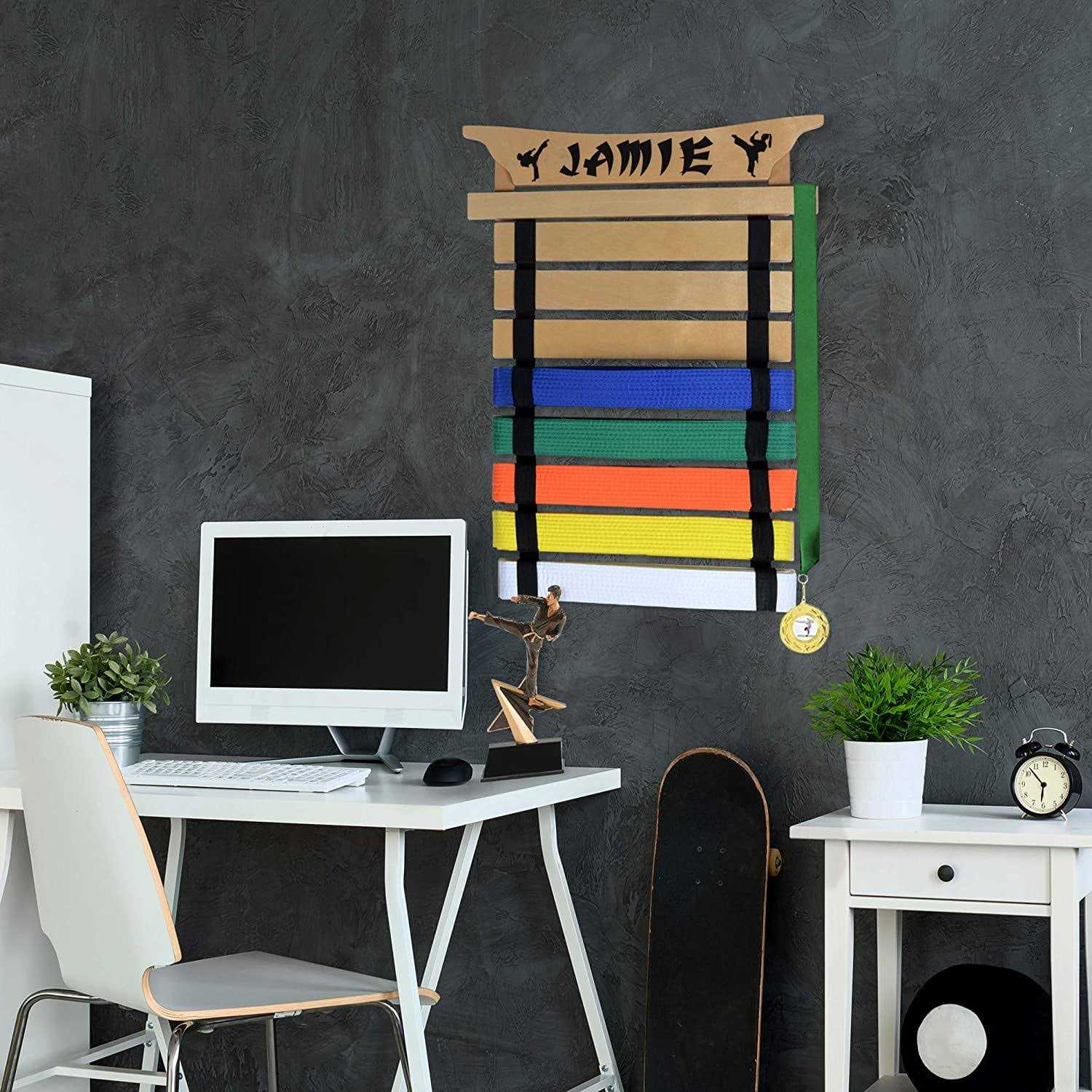 Milliard Karate Belt Display Holds 8 Martial Arts Belts – Personalize with Stickers