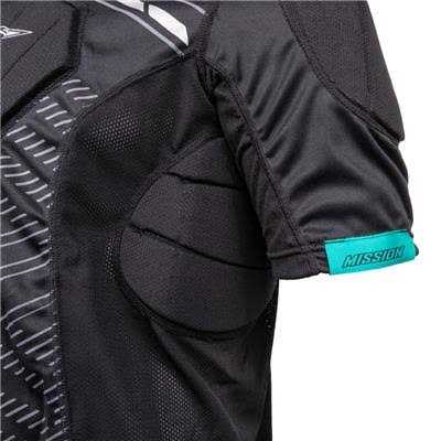 The Mission Core padded shirt is designed to offer players great protection in high impact areas for the game of roller hockey. This shirt features a multi-segment design. This Mission padded shirt features perforated and padded foam in throughout the shirt, including the collar bone, chest, rib, bicep, and spine area.