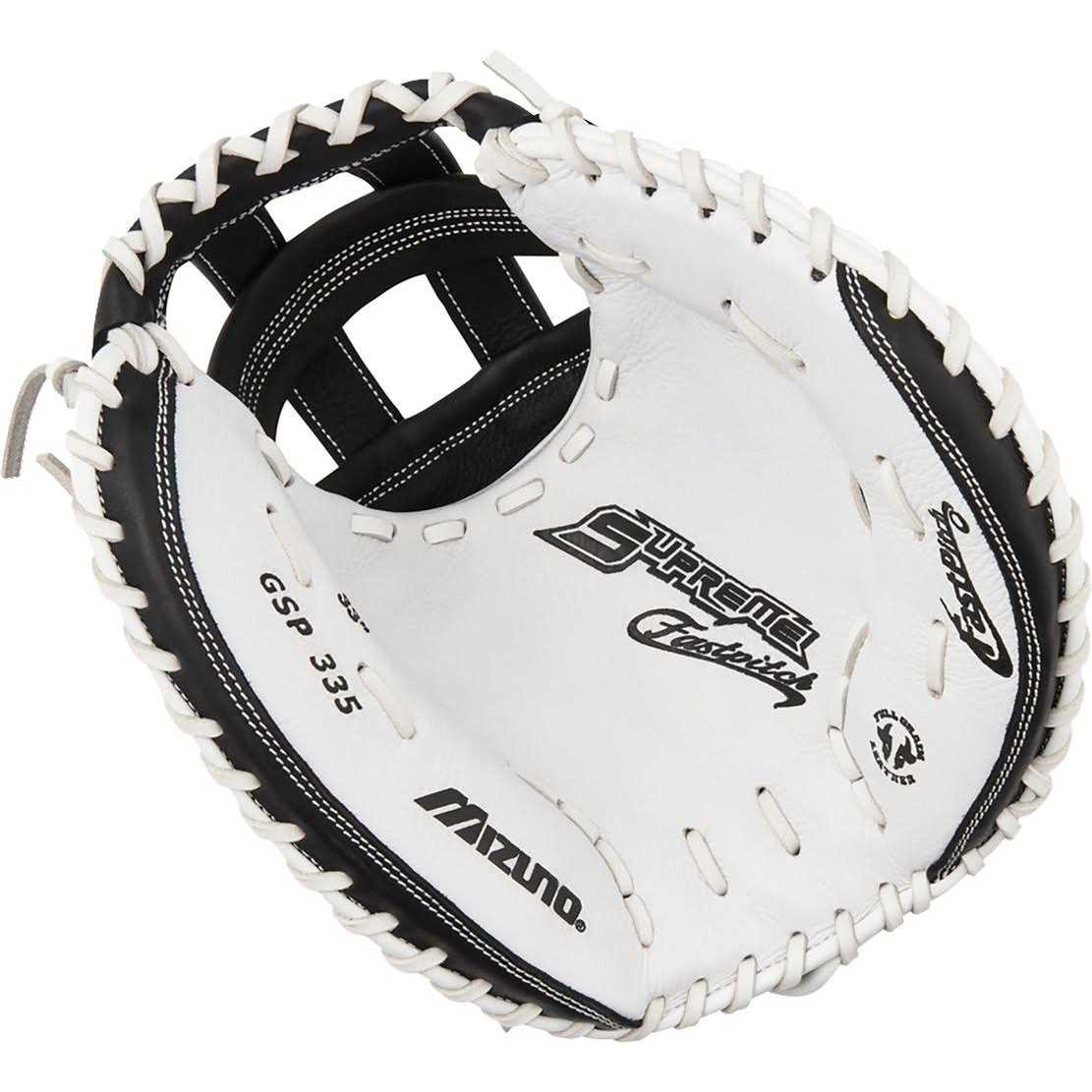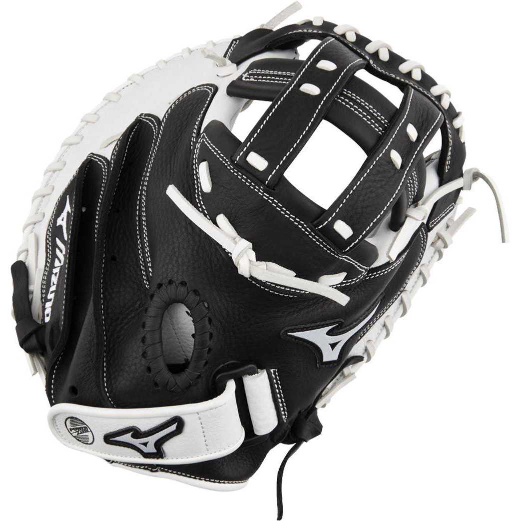 Mizuno 2023 Supreme Series Fastpitch Catcher’s Mitt – Black & White – 33 in