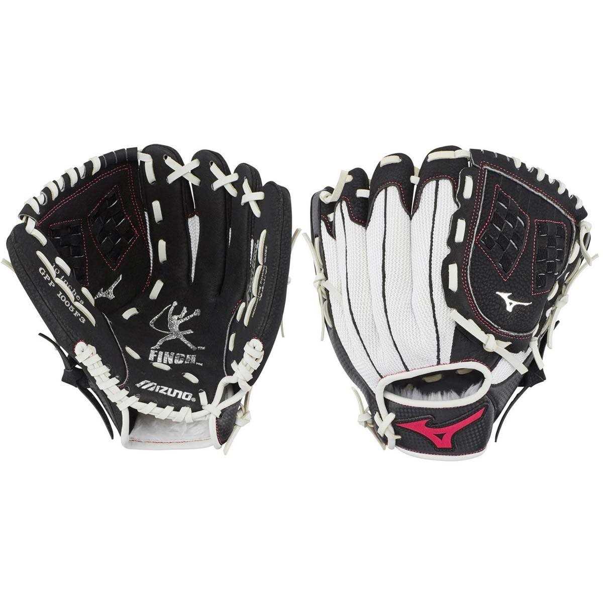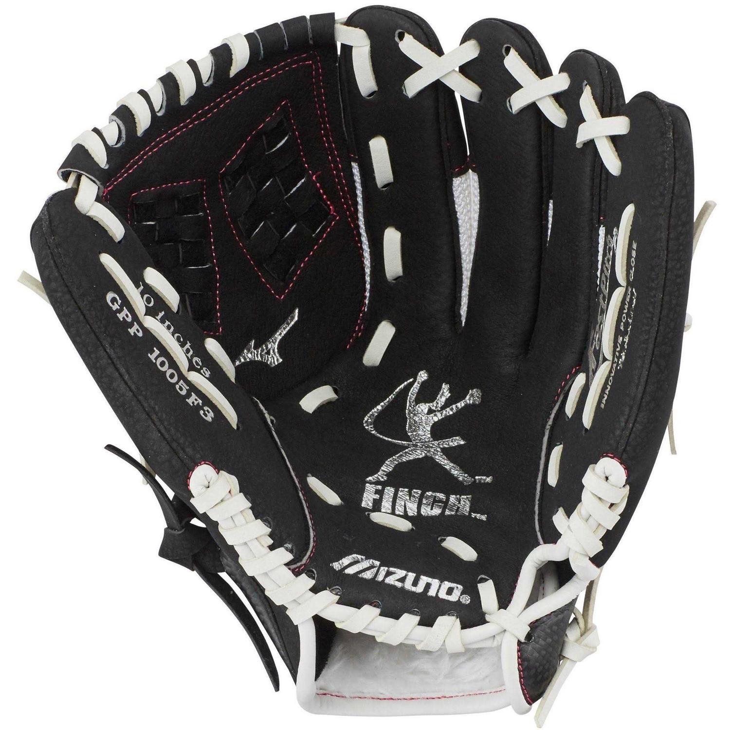 The 2019 Mizuno Prospect Finch Youth fastpitch softball glove features a design inspired by softball legend and Mizuno Brand Ambassador Jennie Finch. Her input gives the glove features that make it comfortable to wear while offering the control and flexibility to help players field with elite confidence. The full grain leather palm and pigskin back create a glove that’s ready to endure many tough seasons. The ButterSoft palm liner is durable and comfortable, and it offers terrific feel, which makes it easier to handle and manuever on the field. The MZO Lining can disperse sweat, so your glove stays comfortable and secure from the first inning to the last. The AirMesh back breathes well, so hands stay cooler, and it’s flexible enough to help young players learn the fundamentals. Mizuno: Driven by Athletes. Crafted to Win! The 2019 Mizuno Prospect Finch Youth fastpitch softball glove (GPP1005F3) has a 10-inch opening, a trident web pattern, and a conventional open back. A 10-inch glove works well for youths who play infield positions. Infielders can benefit from the quicker movement offered by a smaller glove, and by its better flexibility. The closed trident web pattern can give players more support when they need to handle a throw or hit, and help the glove stay secure.