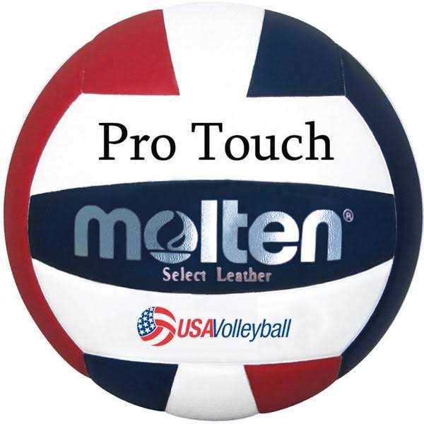 Volleyball Molten. A ball specially designed for elite competition, the Molten Pro Touch V58L-3-HS is stamped and approved by the NFHS. A nylon wound ball featuring a premium Japanese leather cover dressed in red, white and blue for increased visibility this popular volleyball adds a pro’s touch to your indoor volleyball game. Official ball of USA Volleyball. National Federation of High School (NFHS) approved and stamped. Indoor use. Premium Japanese leather cover. Nylon wound.