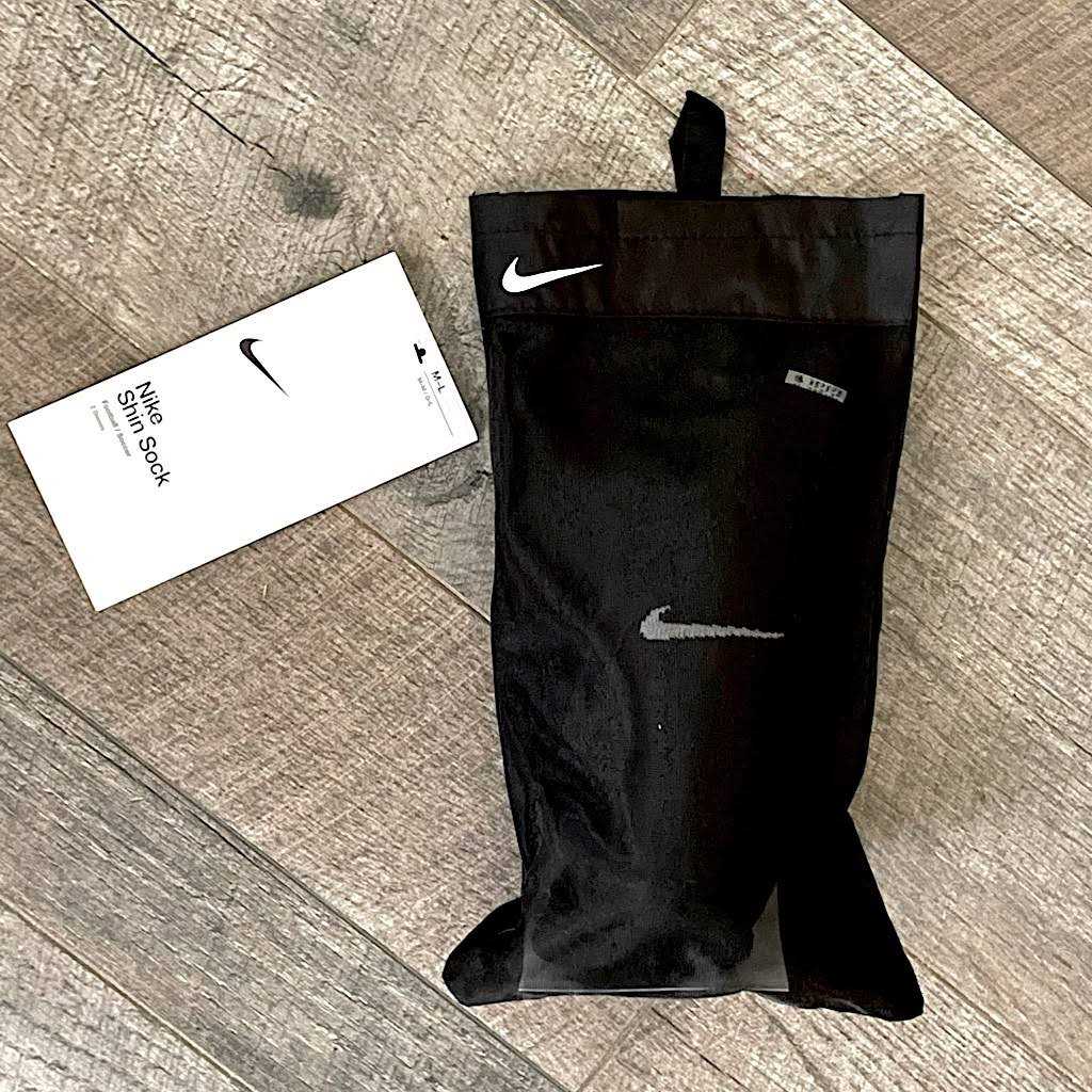ALL-IN-1 CUSHIONING. The Nike Soccer Shin Guards feature a unique sock design with a built-in hard shell and foam padding for impact cushioning where you need it most. Extra foam on either side of your ankle creates a comfortable fit. Benefits All-in-1 design has a shin guard built into the sock. Built-in shin guard has a ventilated hard shell with foam padding. Foam on either side of your ankle creates a comfortable fit. Product Details Materials: 54% nylon/25% polyethylene/16% EVA/5% polyester. Machine wash. Imported. Style: SP2168; Color: Black/White; Size: M/L; Gender: Male.