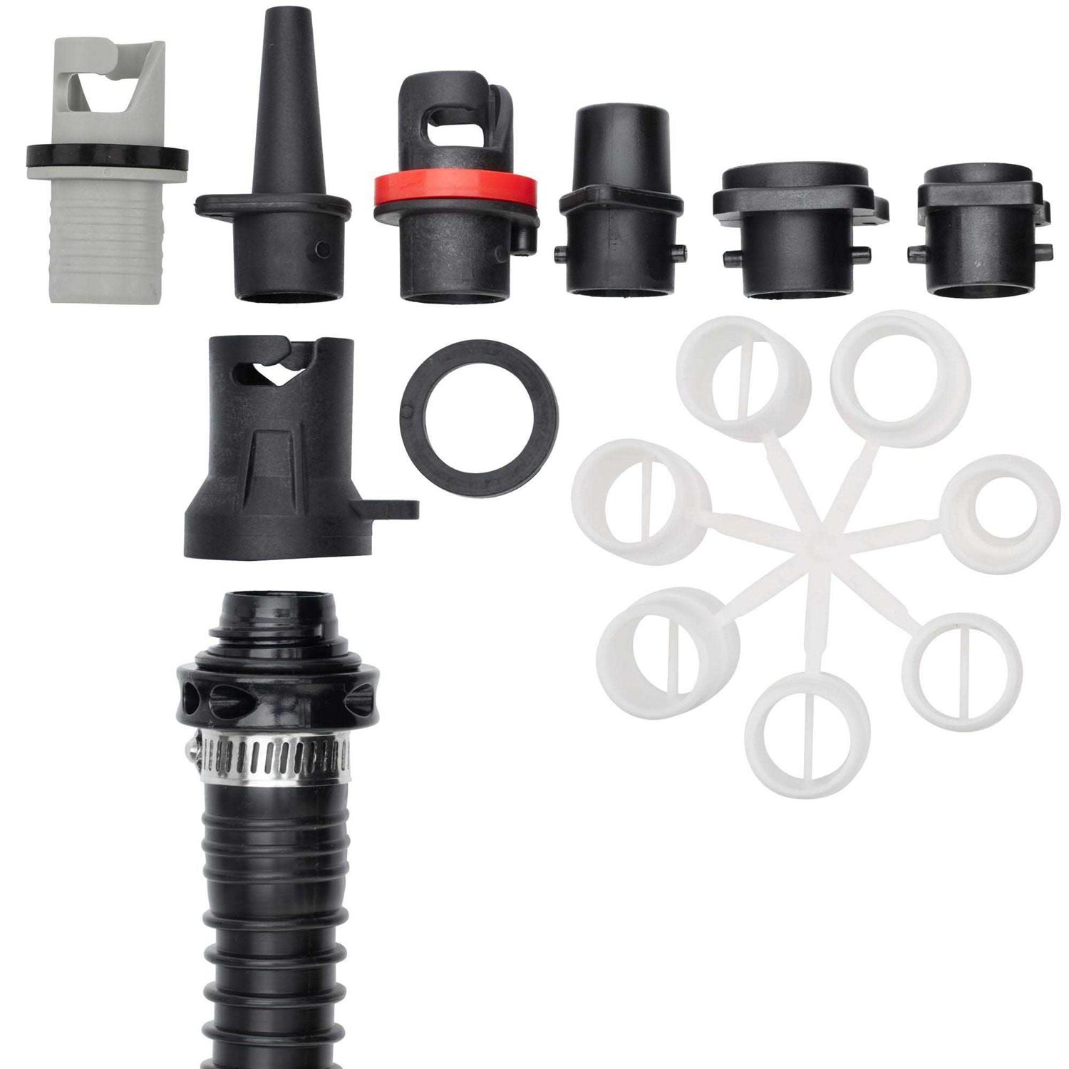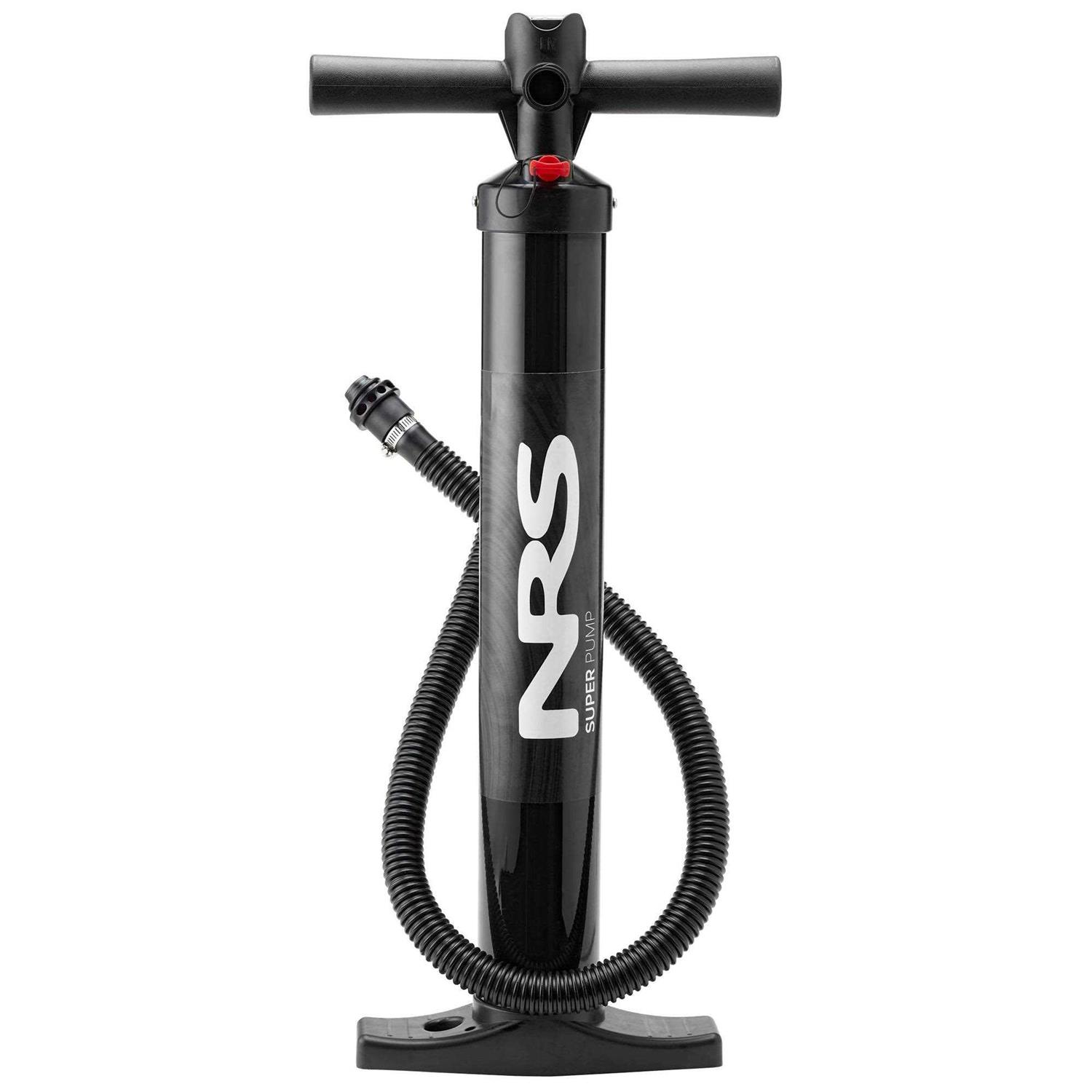 The NRS Super Pump, an affordable high-pressure pump that’s perfect for today’s drop-stitch inflatable stand up paddle and body boards. Inflates to 20 psi with ease. Built-in pressure gauge takes the guesswork out of inflating your boat, kayak or board. This low-volume, two-hand pump lets you inflate to pressures up to 20 psi. You get double-action pumping (inflate on both up and down motions) when you have the red plug screwed into the air port in the top cap. This allows you to quickly put the majority of the air volume in your inflatable. The aluminum shaft, sturdy handle and tough polypropylene housing are built to withstand lots of use. Includes Leafield C7/D7 Valve Adapter and other adapters that fit Halkey-Roberts New Short, Summit 2 and H3 valves.
