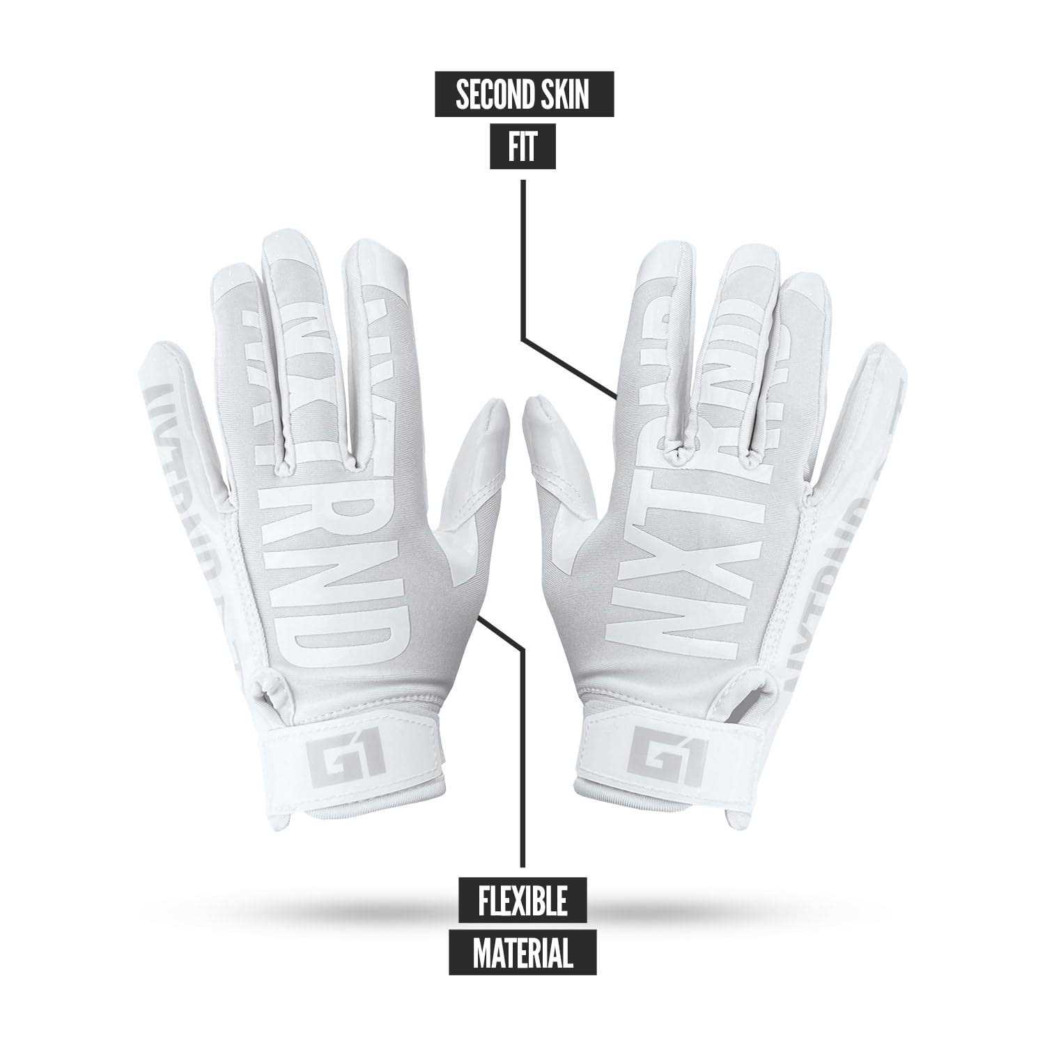 Nxtrnd G1 Pro Football Gloves, Mens & Youth Boys Sticky Receiver Gloves (White, Youth Large)