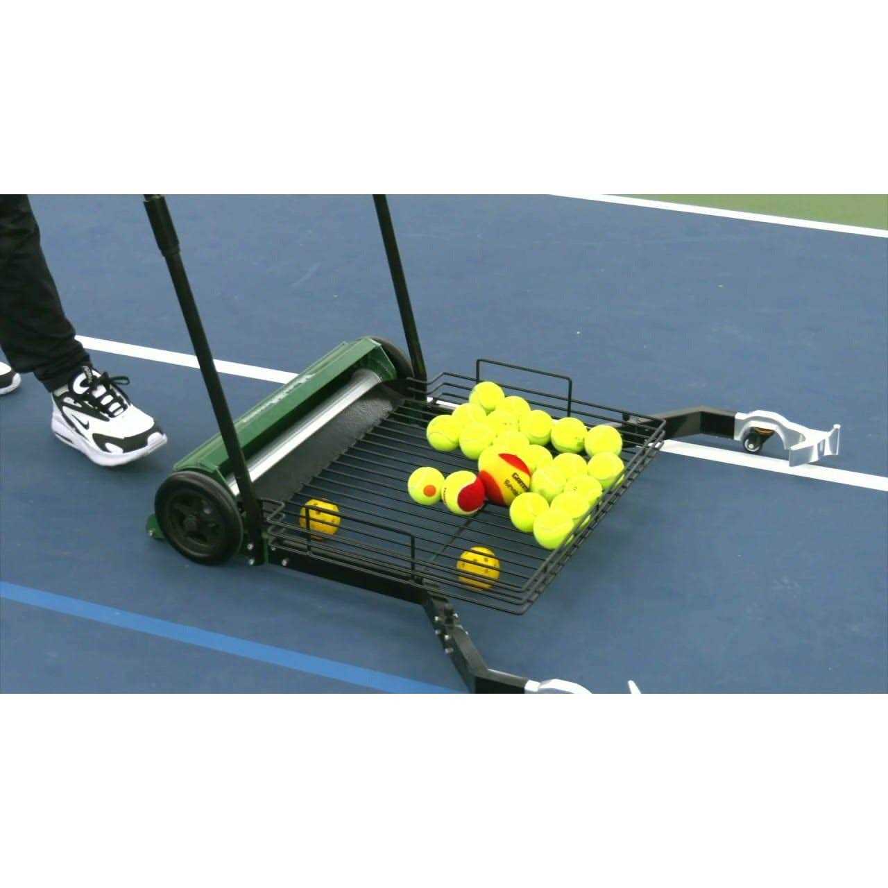 Our MultiMower is the best-value ball mower in the industry! It doubles as a teaching cart, stretching your budget like never before! It is easy to transport and is equipped with a unique “ridged” roller for a smooth and effortless ball pick-up. Plus, 2 extra back wheels make it easy to tilt and roll over small bumps on walkways. Ground level pick-up arms close for feeding or wheeling through gates.