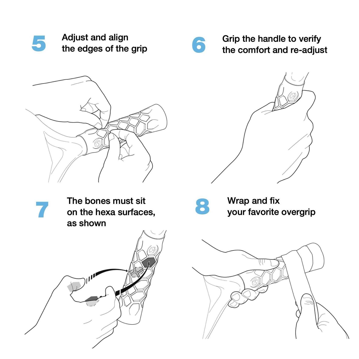 Perfect balance between comfort and efficiency: the multifaceted design of Hesacore expands the contact surface between hand and the handle. As a result, Hesacore generates between 8% and 14% more grip, depending on the overgrip used by the player. This means that the player can hold the handle with less effort and finger contraction, while the hand does not slip from the hand. Increases grip strength: with Hesacore, the hand wraps the handle with an ideal grip. Each of its hexagons has two edges parallel to each other, which coincide with the interphalangeal joints of the finger. Two of the other edges of the same hexagon lie parallel to the finger, supporting it laterally. More friction and finger support increasing control, power, and spin: Hesacore helps the correct and efficient use of the bottom three fingers to manage the swing of the paddle with the little finger representing the fulcrum around the paddle rotates while the index and thumb, on their part, are essential to control and speed up the rotation of the paddle head. Helps for sweaty hands avoiding the paddle slipping from the hand: contrary to traditional grips, Pickleball players who use Hesacore appreciate the fact that the handle does not slip from the hands. Play with less effort and finger contraction: when hitting the ball, the contraction of hand muscles (especially middle and ring fingers) is directly related to contractions also happening in the wrist and forearm. All this muscle activity affects the effectiveness of the shot, since a rigid and ripped movement would prevent the efficient transfer of energy to the ball. Hesacore Pickleball Paddle Tour Grip is a revolutionary grip designed to enhance the player’s performance while offering unmatched comfort. This innovative grip combines the best of both worlds, offering an exceptional balance between comfort and efficiency, which is why it’s become so popular among club players. One of the standout features of Hesacore Tour Grip is its multifaceted design, which expands the contact surface between the hand and the handle. This feature generates between 8% and 14% more grip, depending on the overgrip used by the player, reducing the effort and finger contraction needed to hold the handle, while at the same time preventing the hand from slipping. Another unique advantage of Hesacore is its ability to increase grip strength. Each hexagon in the grip has two edges parallel to each other, coinciding with the interphalangeal joints of the finger, providing additional support and reducing lateral movement. This innovative design allows for efficient use of the bottom three fingers to manage the swing of the paddle, while the little finger serves as the fulcrum around which the paddle rotates. The index and thumb are also essential for controlling and speeding up the rotation of the paddle head. Hesacore Tour Grip helps absorbing the sweat, making it the perfect grip for players with sweaty hands. Traditional grips tend to slip when the player’s hands are sweaty, but Hesacore’s unique design ensures that the paddle doesn’t slip from the hand. In conclusion, Hesacore Pickleball Paddle Tour Grip is the ultimate grip for players who want to improve their performance while ensuring maximum comfort. Its innovative design offers a perfect balance between comfort and efficiency, increasing grip strength, providing more friction and finger support, absorbing sweat, and reducing the effort and finger contraction needed to hold the handle. Hesacore Tour Grip has quickly become the preferred choice among club players!