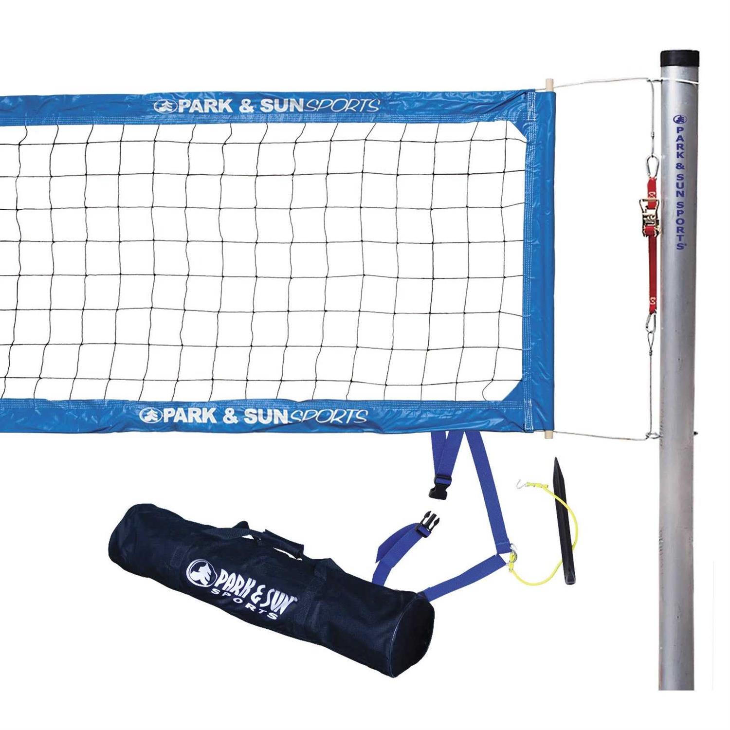 The Tournament 4000 Volleyball Net System was designed for professional outdoor use. This comprehensive kit includes all you need to set up a permanent grass or sand court and includes a durable equipment bag to store and transport it all. This professional grade volleyball system includes 4″ x 12-1/2′ aluminum poles with zinc-plated hardware to resist the elements. The net is a 39″ x 32′ steel cable with side dowels and lever ratchet. The boundary markers in the kit are pre-measured for grass and or sand play.