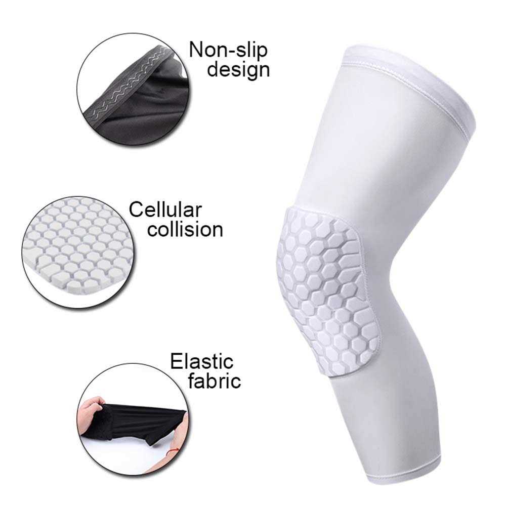 Ideal For Basketball/Skateboarding/Volleyball/Baseball/Softball/Tennis/Bowling/Cycling/Bicycling/Soccer/Football and more! Wash Tips Do not wash by machine! Use mild detergent and cold water hand washing. Do not bleach, do not wash in hot water. Don’t use dry cleaning or drying. Product Features Anti-Collision Design The front knee is equipped with a high-density PEF cellular gaskets. The high-abrasion resistance of the gasket and the gap can absorb most of the force at the moment of collision, effectively protecting the knee from severe impact damage. High Quality, Compression Technology High performance fabric will stretch over the knee, to help provide padding and support to the back and front areas of your knee. Compression technology helps to induce proper blood flow, which will not only promote circulation, but will also help in the healing process if you are suffering from an injury. UV Protection Cover your thighs, knees, and calves during athletic outdoor activities and prevent wrinkles, age spots, sunburns, skin damage, over-exposure from the sun and more! Anti Slip Grip Protection Elastic fiber will keep your knee in place, and the interior anti slip grip protection will help to keep the padded knee pad in place when you are moving quickly.Keep the knee warm, keep tight compression over the area, helps to promote quicker healing or recovery from injuries.