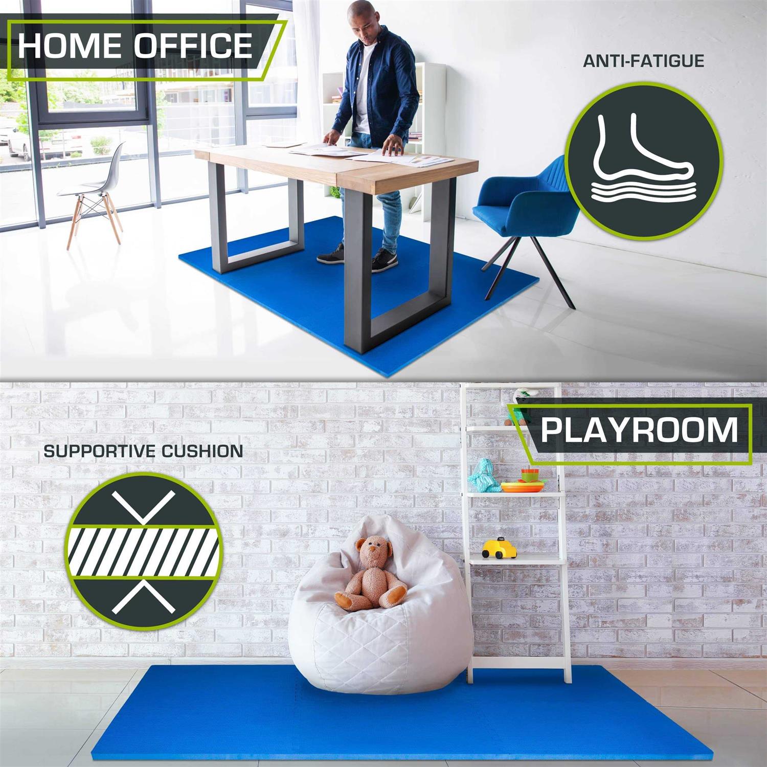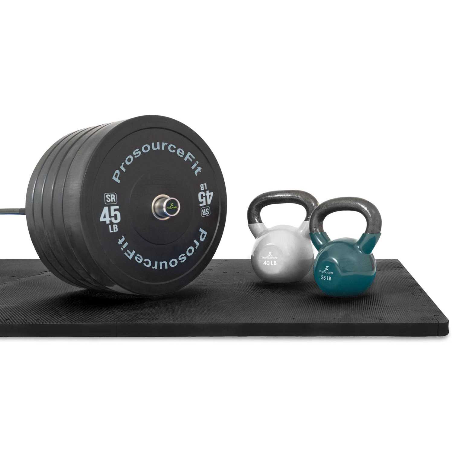 Transform any space into a comfortable workout area with the ProsourceFit Exercise Puzzle Mat 1 in. Six extra-thick tiles create protective flooring over wood, concrete or carpet for workouts and gym equipment. This is the perfect solution for anyone looking for an exercise mat or multipurpose flooring thicker than 1/2 in. thick. It has great durability and creates more protection for heavier gym equipment and higher traffic. The textured surface has a soft feel with non-skid traction that is low-maintenance. Interlocking pieces are easy to assemble, covering 24 square feet. 12 border pieces help to create a flawless finish. Built to absorb impact and provide cushion to sensitive joints while reducing noise. EVA foam contains no toxic phthalates. Use just a few tiles for smaller spaces, or purchase multiple sets for large areas. Perfect for fitness studios, home gyms, commercial use, children’s play areas, gymnastics or wrestling practice, yoga and more.