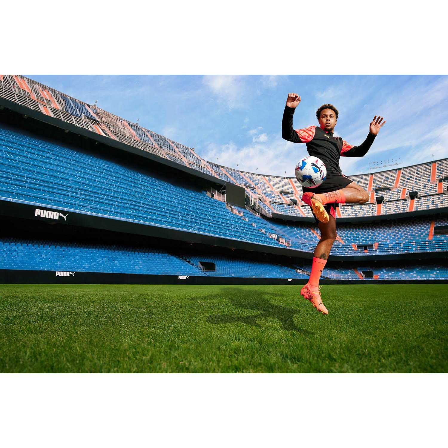 FEATURES: The name PUMA Cumbre is inspired by the mountain range that crosses the Americas, seeking to leave football in the region at the top. Its design is based on the shape of the continent Its 16 lines refer to the total number of countries that will make up the CONMEBOL Copa América 2024 . In this way, the ball seeks to unite all the nations that will compete in the oldest and most exciting national team cup in the world. High frequency molded ball: Excellent shape retention, durability, and reduced water absorption keeps a soft touch when kicking the ball. Textured 0.8 mm PU outer: Improves durability, aerodynamics. POE foam layer: Provides a firm touch, improved consistency of rebound and explosive power. Reinforced Rubber bladder + PAL (Puma Air Lock) valve leads to excellent air retention for longer lasting play 32 panel configuration: perfectly balanced panel configuration for a straight and consistent flight. ADDITIONAL DETAILS: Fifa Quality Certified: Guarantee’s excellent level of performance