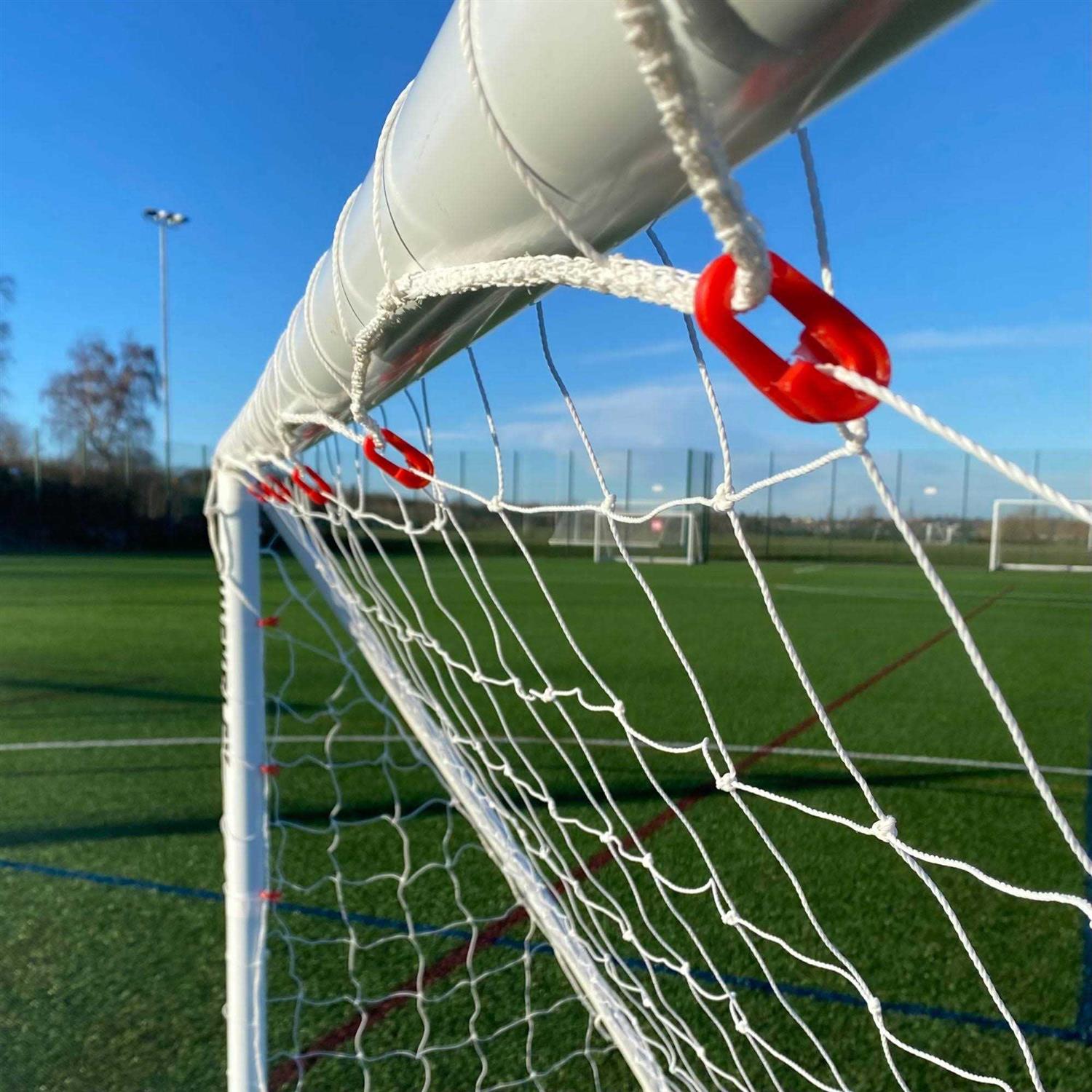 All-Weather Rigid post uPVC soccer goal Super Fast 30 Second Set-Up from Folded Durable Flex Joint System Straight Crossbar Technology Easy On Net Hooks Patent Pending – Innovated by QUICKPLAY Also available in these sizes: 6 x 4′ 12 x 6′ 10 x 6.5′ / 3 x 2m All-Weather Soccer Goal This durable, high-grade 70mm uPVC soccer goal can be left outdoors all year round. Super Fast 30 Second Set Up from Folded Despite its large size when set up, it sets up from folded position in 30 seconds and folds flat for easier transportation and storage. From folded position, just unfold the side bars until you hear a click, then insert the back bar, and it’s up. Even from the storage box, it takes only five minutes and it’s ready to go. Durable Flex-Joint System The greater durability is due to our Fexi-Joint System (patent pending), which reduces stress on the diagonal support poles. This is the point at which other uPVC goals tend to break. Straight Crossbar Technology Another great feature of our goals is the no-sag, straight crossbar technology (patent pending). Crossbar sag is not only unsightly; it can also have an effect on the outcome of games. No one wants a game decided by faulty equipment. Easy on Net Hooks Even our Easy-On net clips are quick and easy to use, and durable during play. What’s in the box: Goal frame Goal Net & hooks Ground stakes
