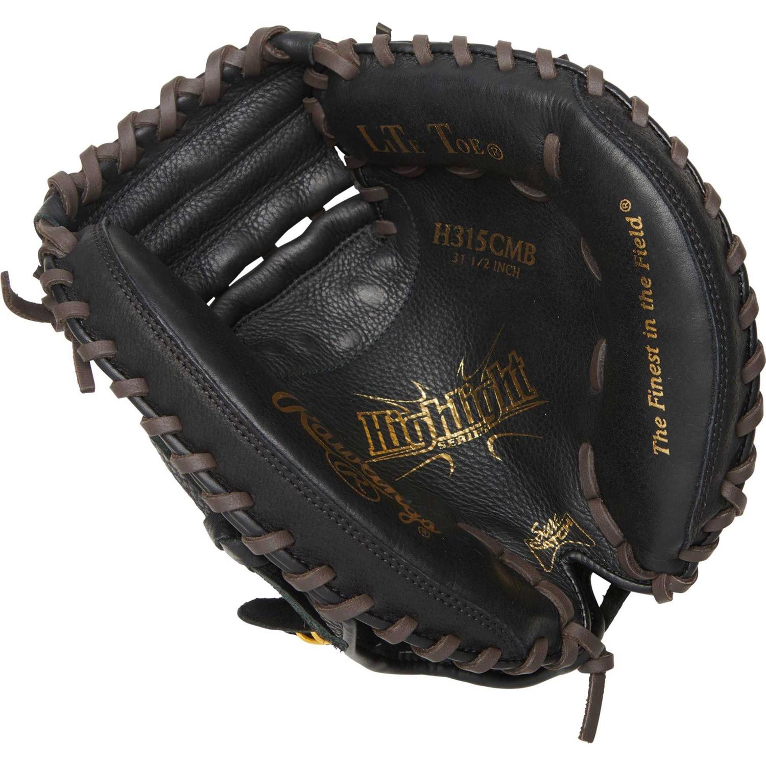 Developed with durable materials and features that guide your player with consistency on the diamond, the Rawlings highlight series glove is a solid go-to as they progress through the season. This 31.5” catcher’s mitt utilizes a closed web to easily exchange balls from the glove to your throwing hand and is backed with soft pigskin leather to maximize longevity behind the plate. Create your highlight: Soft pigskin leather shell offers premium durability. Cushioned brushed nylon finger back lining for a comfortable feel. Sure catch heel design for easy close. Fastback integration enhances flexibility and strength. Internal palm pad absorbs impact for consistent cushioning. Closed back with index finger opening.