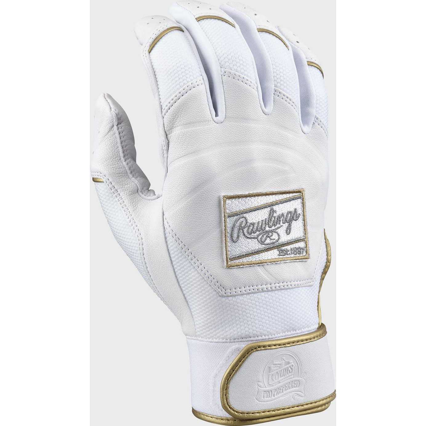 Unleash your potential at the plate with Rawlings Pro Preferred Batting Gloves, the ultimate choice for High School level players and above. These gloves feature professional-grade smooth Cabretta sheepskin leather, ensuring superior performance and durability across the palm, back, and strap. Experience unmatched comfort and a customized fit with the flexible neoprene wrist cuff, adorned with gold piping/binding for a touch of style. The double-stitched rolled edges enhance the gloves’ durability and deliver a professional finish that’s built to last. Sport the iconic design of the embossed Rawlings Patch logo and embossed Pro Preferred logo, showcasing your dedication to the game and your commitment to excellence. Choose from elite colorways, including Camel/Black/Gold, Black/Gold, or White/Gold, and make a statement on the field. Available in a wide range of sizes, from Adult S to XXL, Rawlings Pro Preferred Batting Gloves ensure every player finds their perfect fit. Take your swing to new heights and achieve greatness with these elite batting gloves.