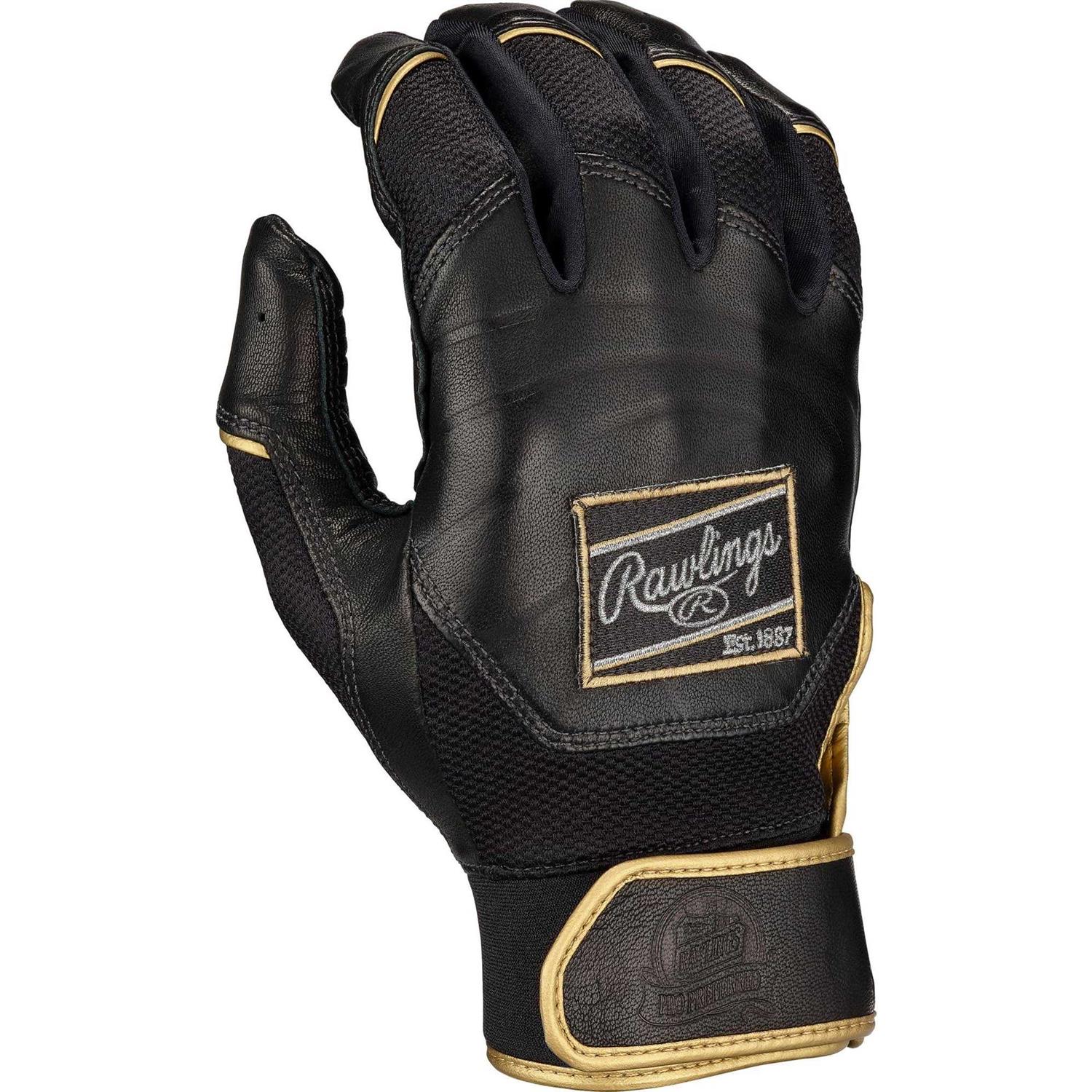 Rawlings Pro Preferred Adult Batting Gloves – XL – Black / Black