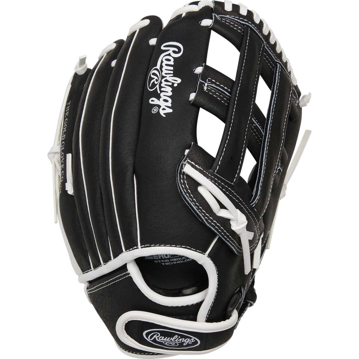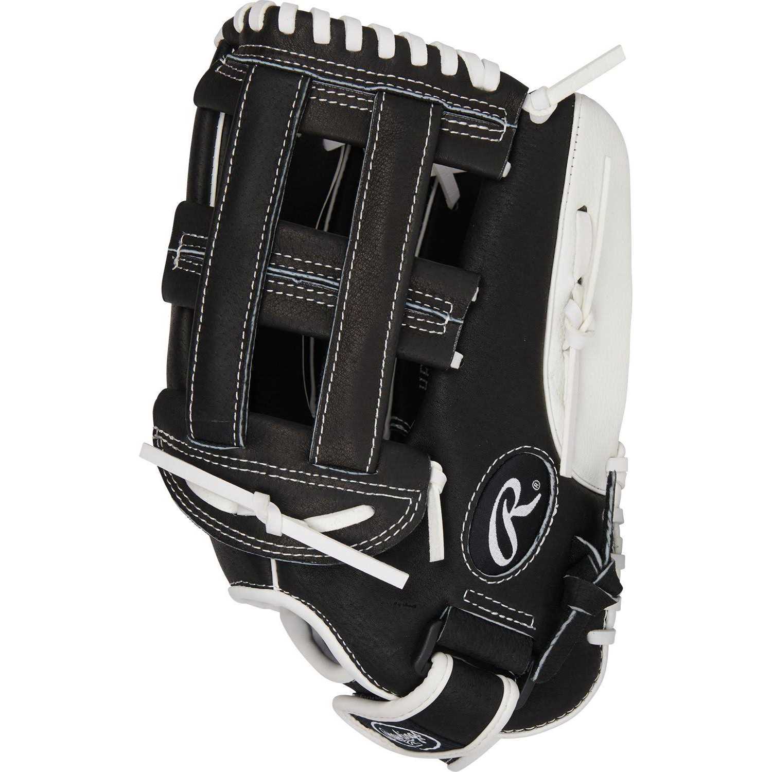 Rawlings 12.5” Girls’ Highlight Series Softball Glove, Black/White