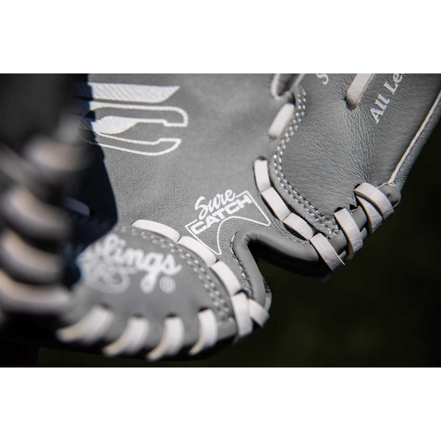 The Rawlings Sure Catch Softball Glove Series was created to be the perfect entry level glove for every aspiring softball player ages 4 to 10. The durable lightweight all-leather shell and padded finger linings provide the comfort and protection that younger players need to be confident in catching the softball. Additionally, this glove is equipped with Rawlings patented Sure Catch technology, which means that glove will be easier to open and close than any other glove on the market. Lastly, the 90% factory break-in means that most of the hard work of breaking in the glove is already completed, so this glove will be ready to use as soon as the player pulls it out of the box. Rawlings understands that learning the game of softball can be hard, so they developed the Sure Catch baseball glove series to alleviate any barriers that could get in the way of a young player wanting to play the game.