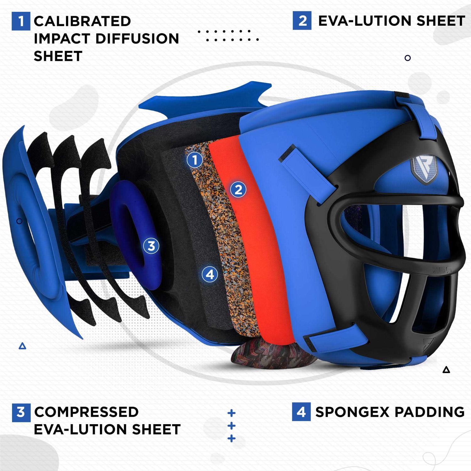 • MULTIPLE PADDINGS – The head gear is reinforced with multiple layers of foam padding that diffuse the brunt of impact during training sessions.