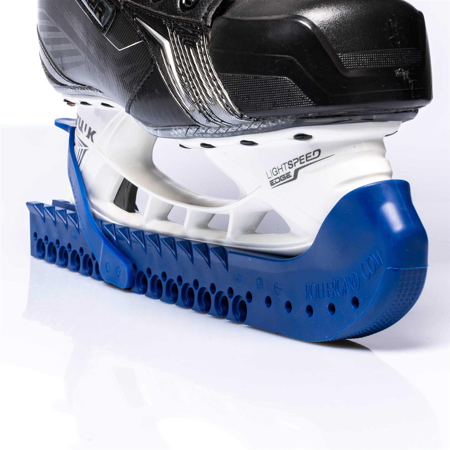 Engineered and manufactured to enhance the most important attributes of a skate guard – durability and blade protection. The lock notch and rib strap work in conjunction to provide maximum grip and to keep skates secure during vigorous use. Serrated bottom and wider design provides better traction and more stability while walking. Blades stay sharp longer since they float inside and never touch the bottom. Side water drainage holes allow moisture to escape and prevents dirt and debris from entering – no more rust. One size fits all just cut the excess skate guard off for a customized fit.
