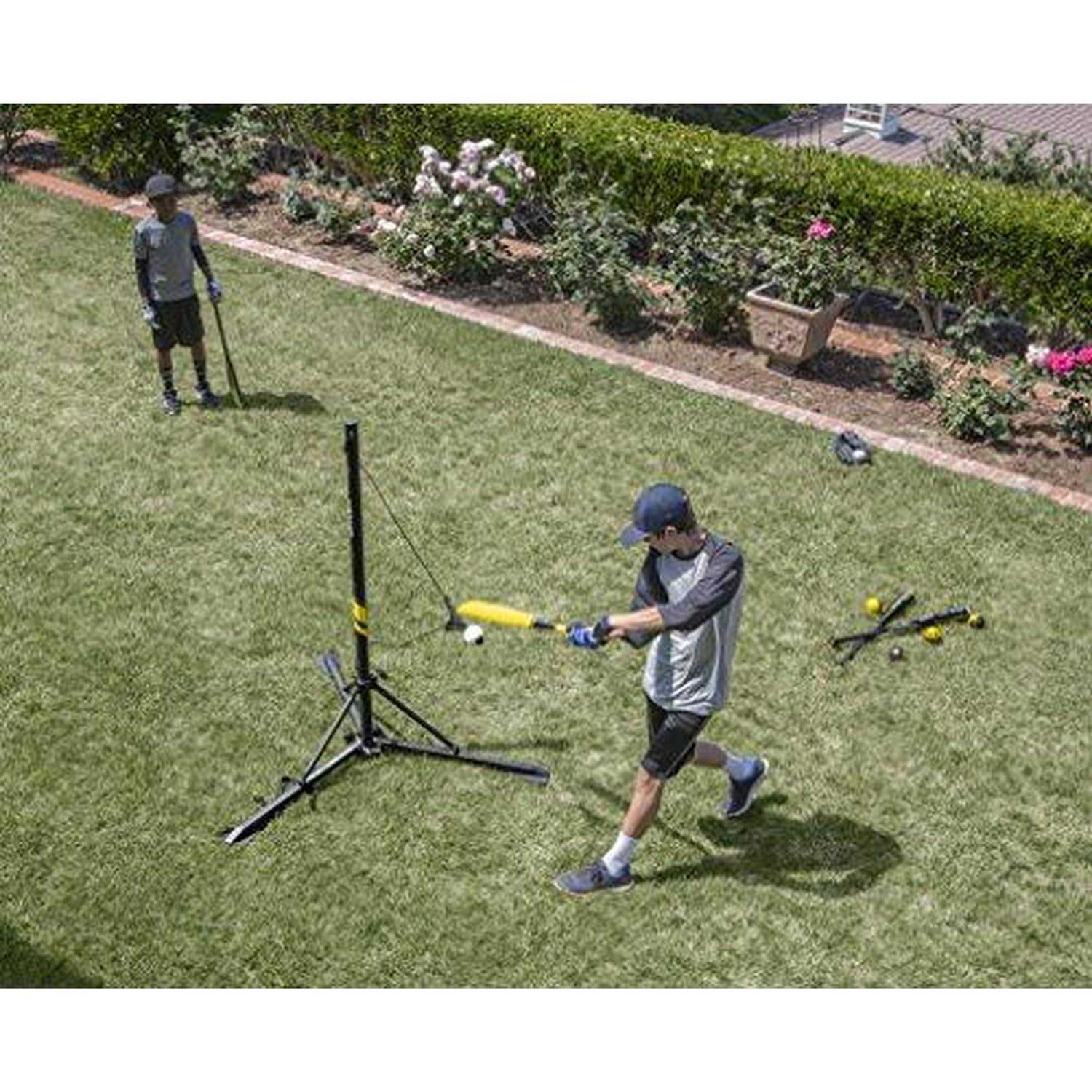 The Hit-A-Way Portable Training Station is the #1 baseball batting trainer of all time. Featuring a sturdy pole and twist-back design to maximize a player’s power, swing speed, and mechanics, the trainer allows for up to 500 swings per hour without ever chasing a ball. The Hit-A-Way now includes a shorter cord for better rotation and the twist-back design simulates real pitches. Portable and compact, the fold-up design sets up and collapses easily, making it ideal for stimulated pitching at-home or during pre-game warmups. Solidly built for frequent use, the 35 lbs. trainer is a must-have for all levels to improve batting technique.