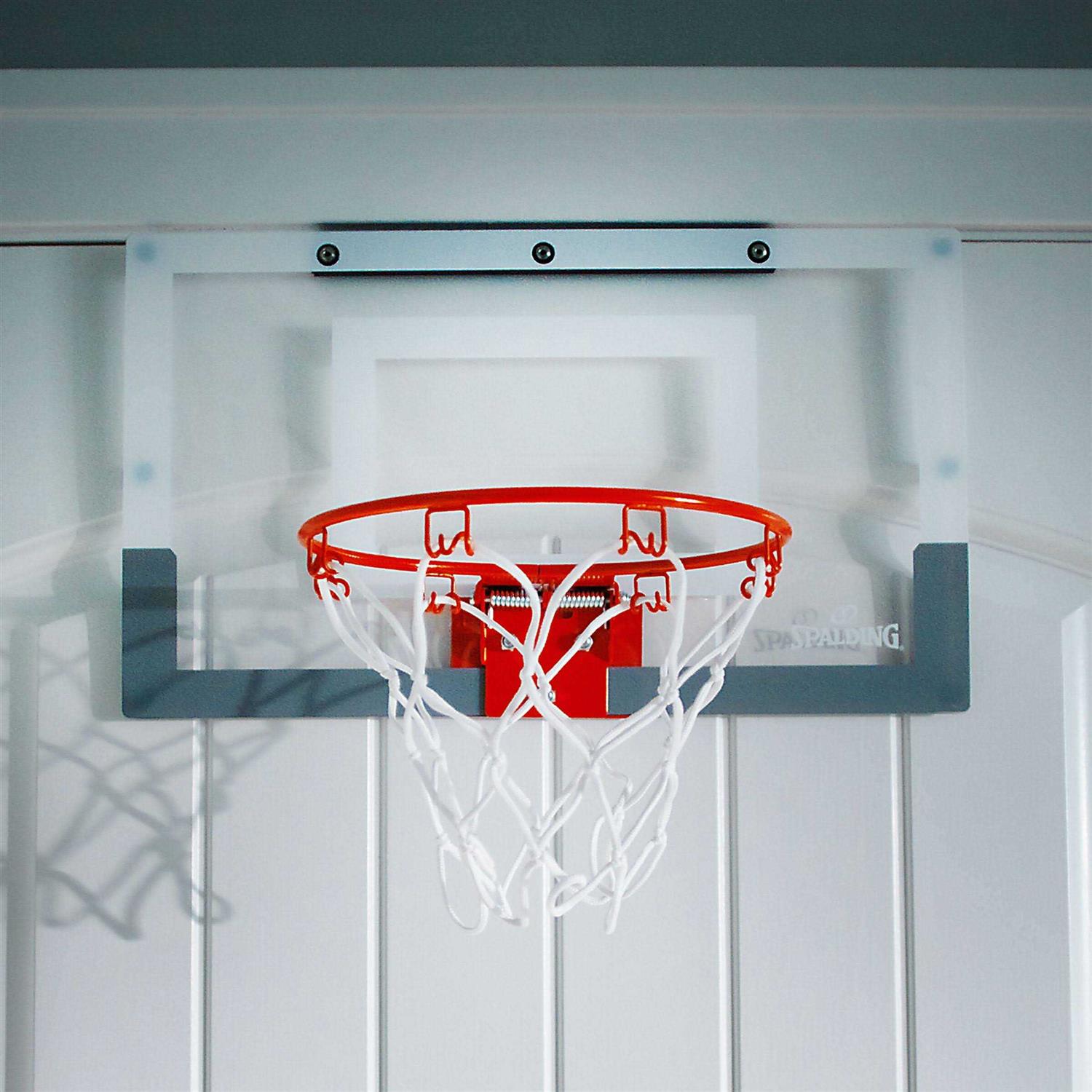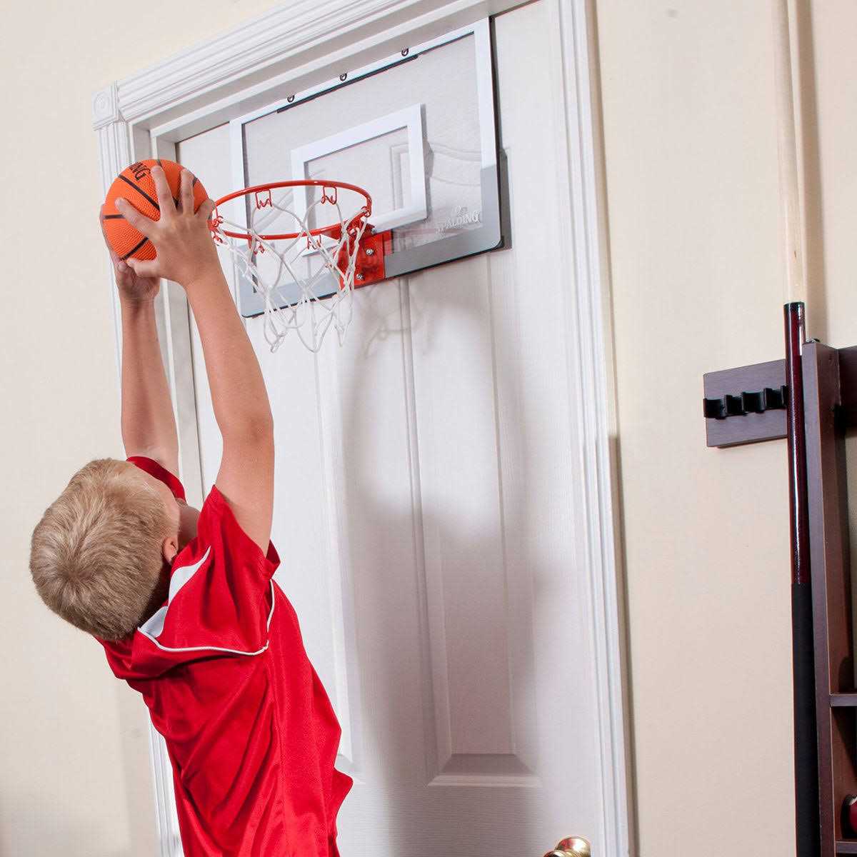 No court, no problem. This over-the-door unit lets you sink shots from your office chair or living room couch. A quarter-scale replica of the official on-court backboard, it has a clear, durable board and steel breakaway rim.