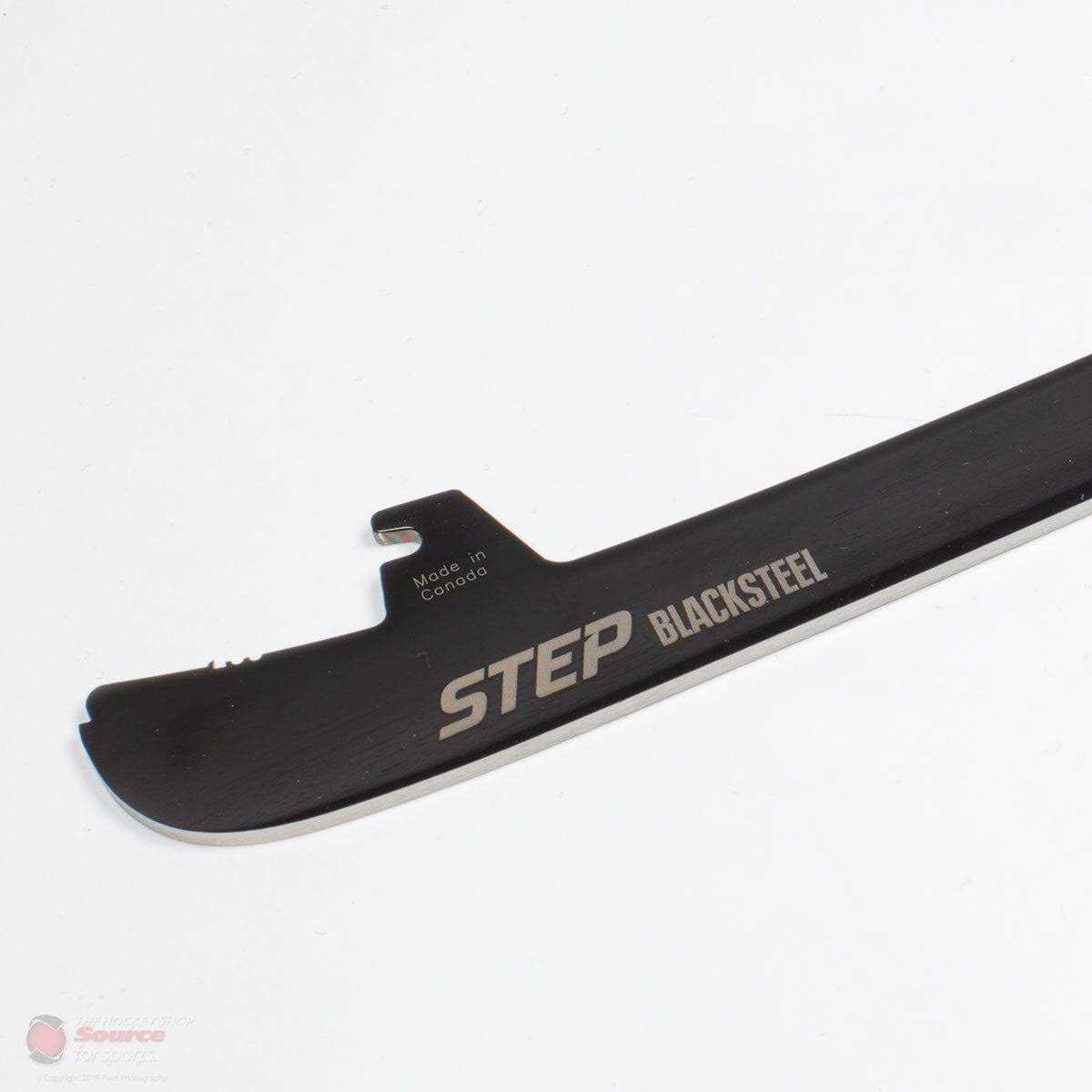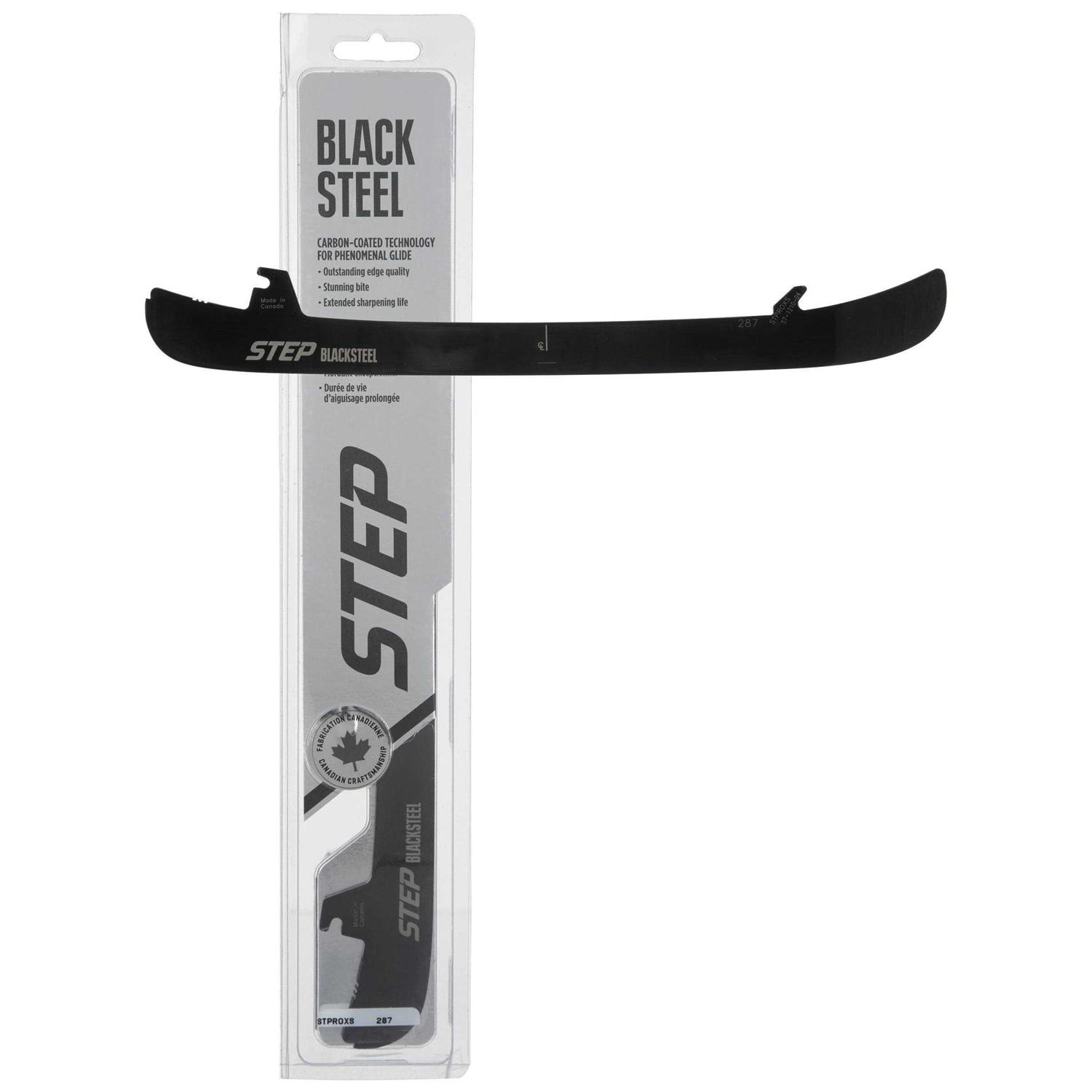 The Step Blacksteel XS Runners feature carbon-coated nano-particles to ensure a fine, hard edge for the most vigorous and unanticipated turns of the game. With a mirror finish, the blade enhances glide quality and improves durability. The redefined high-precision profile offers players a better turning radius, increased longevity of the blade, and an impressive, superior glide. The surface of Step Blacksteel blade is coated with a layer of carbon nanoparticles to create an incredibly fine, hard edge. Like a high-quality knife, there are no burrs on the edge when sharpened. The mirror finish, obtained by heavily polishing the steel, enhances glide quality. The blade’s hard edge withstands bangs and impacts and lasts longer— a real plus when the action gets intense.