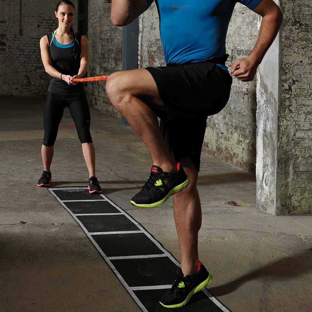 The Stroops Roll Out Ladder with the length of 4,5 meters is highly suitable for an extensive ladder workout. The mat has a non-slip cover on the top as well as the bottom. You don’t have to be afraid that you will slip and even on a slightly slippery floor the mat stays perfectly in place. The Stroops Roll Out Ladder has a nice design which shows a couple of squares next to each other. It basically looks like a real ladder that Is laid out on the floor. This makes the ladder workout even easier to fulfil. The Stroops Roll Out Ladder can by rolled to a smaller size, which makes is easy to handle. Specifications Stroops Roll Out Ladder 4,5 meter: Non-slip layer Saving storage space Clearly drawn squares 4,5 meters long 0,45 meters wide The Stroops Roll Out Ladder 4,5 meter is a mat that can be used to do ladder workouts on a hard surface. This mat has a length of 4,5 meters and is 0,45 meters wide. The Stroops Roll Out Ladder can be rolled easily and doesn’t need a lot of storage space. It has a non-slip layer which makes it easier to use.