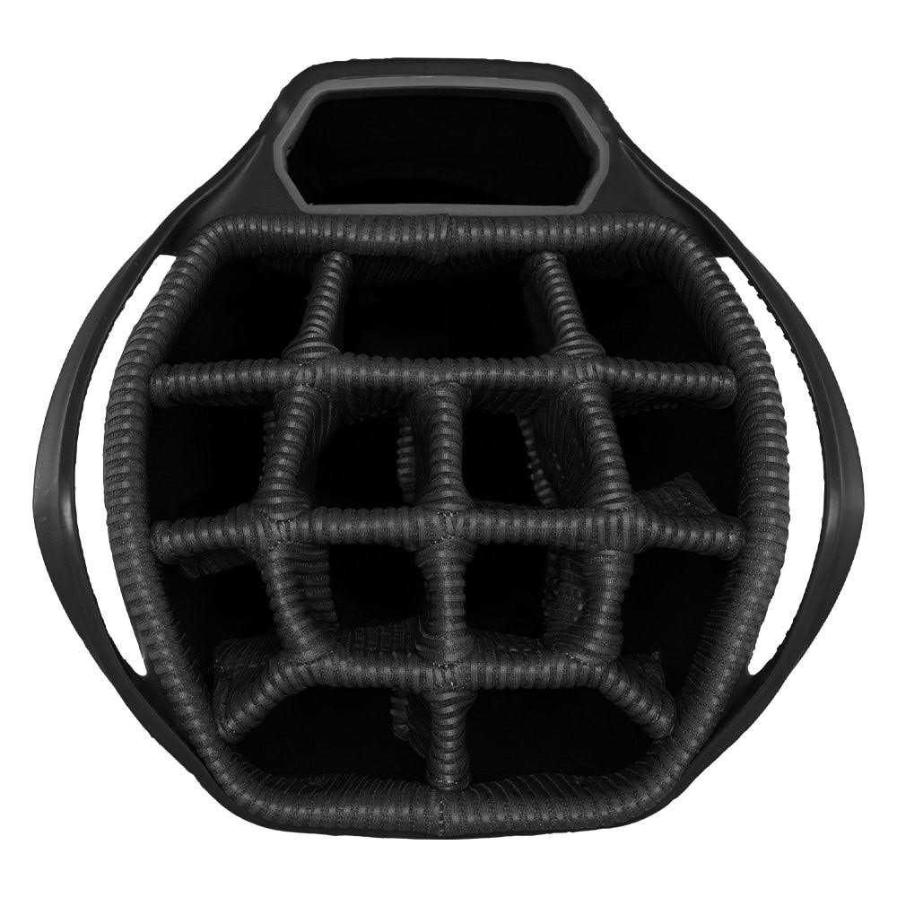 • A cart strap pass-through runs behind the pockets so the bag can be secured to a cart without hindering pocket access.