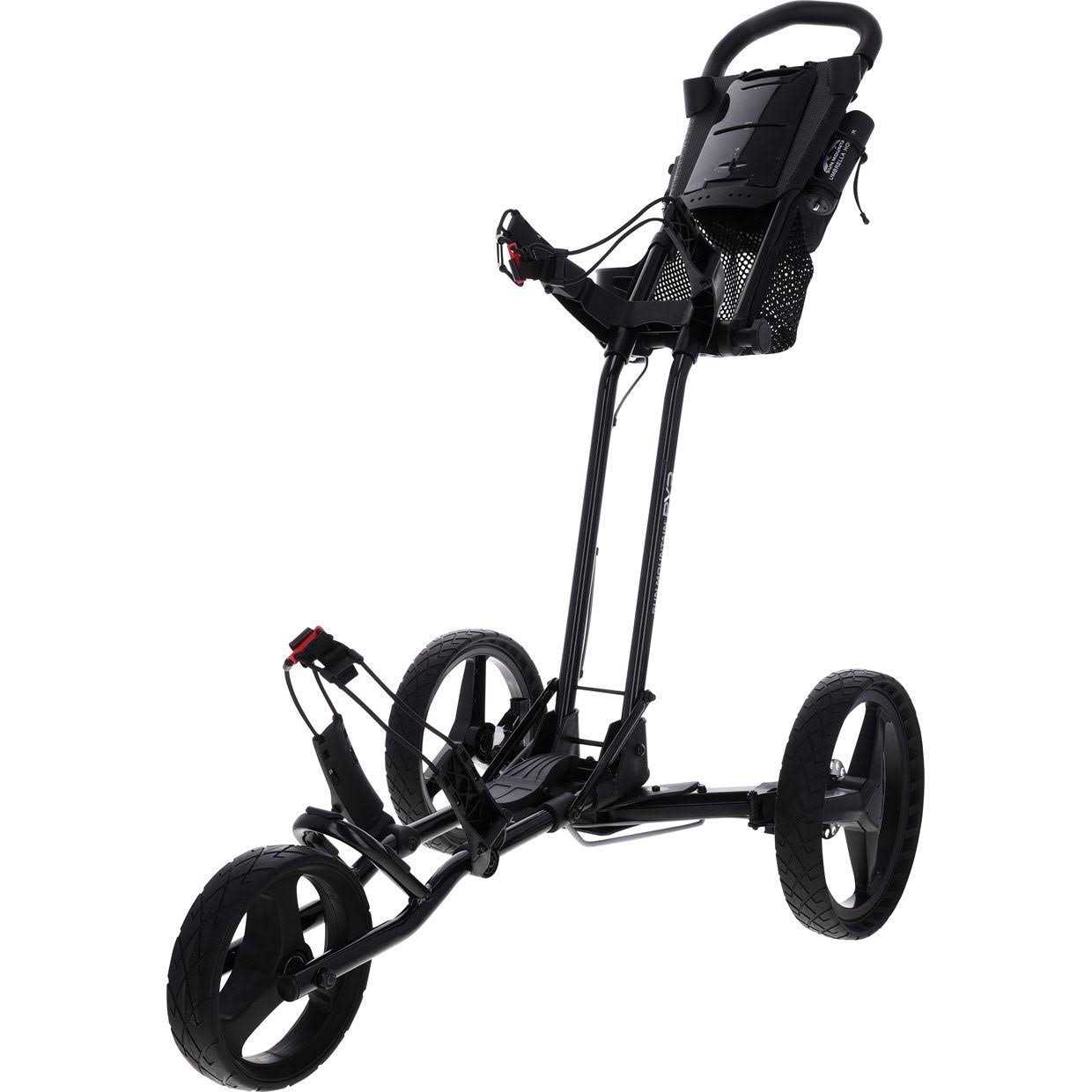 The Sun Mountain Pathfinder PX3 is an exceptionally user-friendly and convenient golf cart, designed with practicality in mind. It effortlessly folds in just two simple steps, a feature that significantly enhances its portability and ease of use. When folded, the compact size of the Pathfinder PX3 allows it to fit easily into the luggage space of most vehicles, making it an ideal choice for golfers who travel to different courses or have limited storage space. In terms of functionality, the cart is equipped with a large accessory console, perfect for storing essential items like mobile phones, scorecards, golf balls, and tees. This ensures all your necessary gear is easily accessible throughout your game. The cart’s design includes adjustable bungee cords on both the upper and lower brackets, providing a secure fit for your golf bag, whether it’s a stand or a cart bag. The universal upper bag bracket is adjustable and versatile, catering to a wide range of bag types and sizes. Lightweight at just 12 lbs and with folded dimensions of W 29″ x H 17″ x D 13″ (W 74cms x H 43cms x D 33cms), the Pathfinder PX3 is not only easy to carry but also space-efficient. Available in a variety of colors, it offers both style and practicality, making it a top choice for golfers seeking a reliable and efficient way to transport their clubs on the course.