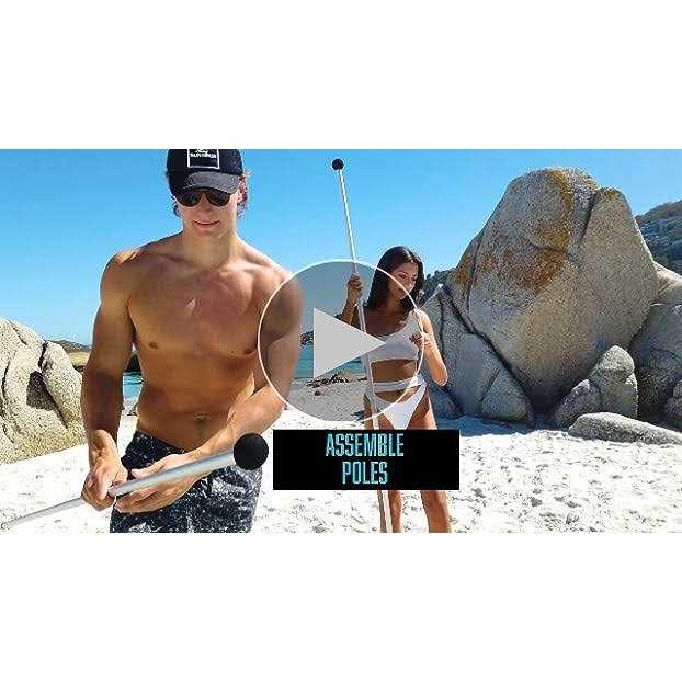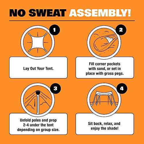 Sun Shelters by SUN NINJA. Details:Sun Ninja sun protection is designed to keep you protected from the sun while enjoying the outdoors with loved ones. With our included video instructions you will be up and running and enjoying the shade quickly and easily! Our tent comes in 3 size options. Our 7X7.5 Feet option is great for 4 people and includes 2 poles, a sand shovel, pegs if you want to use it on the grass, and a travel bag! Our 10X10 is available with either 2 poles which is great for 6 people to enjoy! For even more room, choose the 10×10 that comes with 4 poles to have more shade from the sun with room for 8. All sizes come with a sand shovel, pegs for use on grass and a travel bag! Made from Durable, elastic spandex, with Triple overlock stitching, is water.