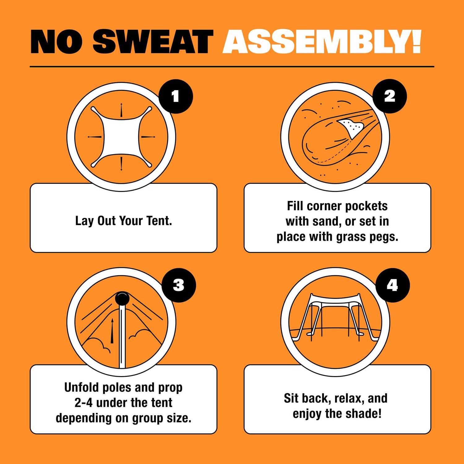 - For even more room, choose the 10×10 that comes with 4 poles to have more shade from the sun with room for 8.