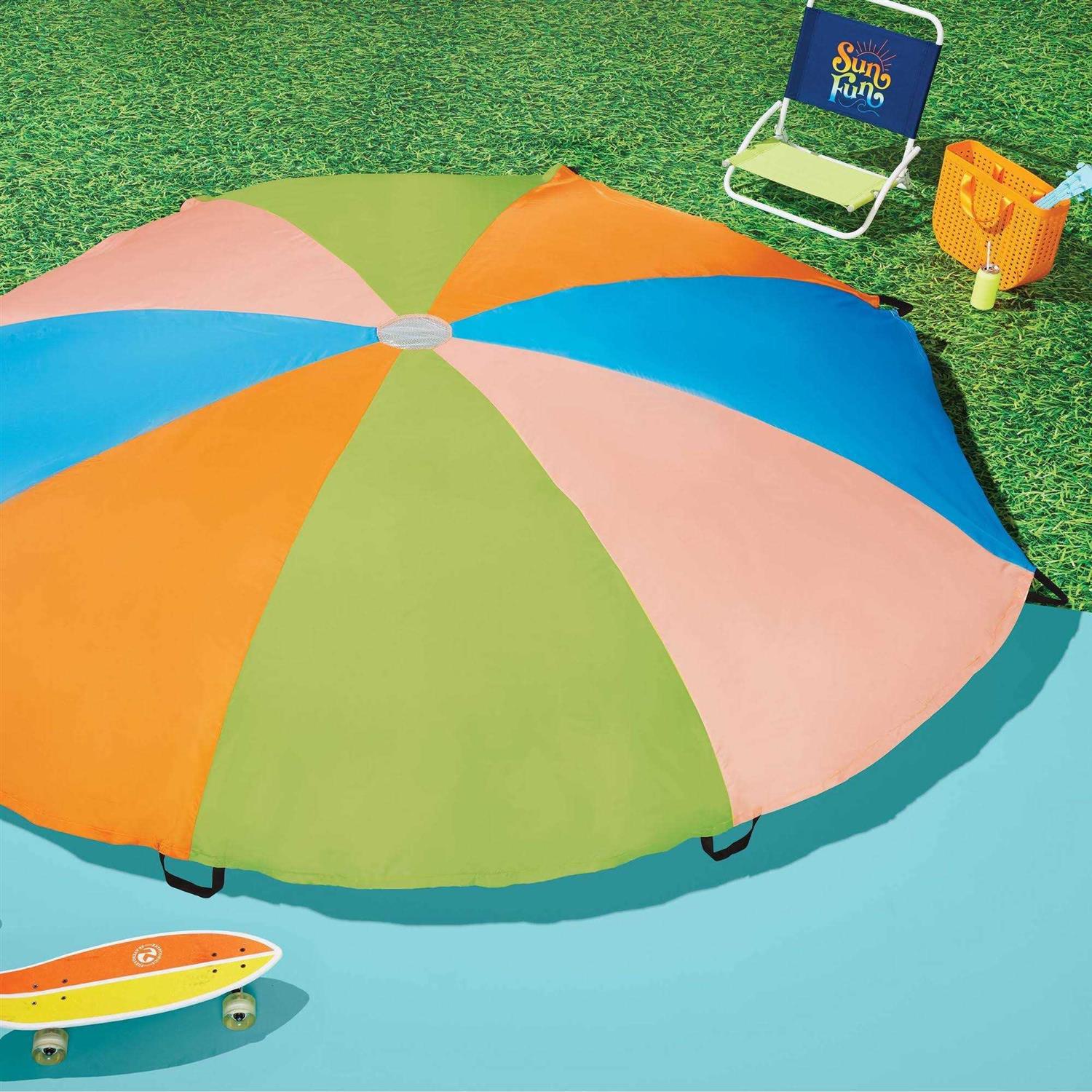 Bring big fun to your backyard with the Giant Parachute from Sun Squad . From parachute games like “Popcorn” to team-building activities like “Shark Attack,” the possibilities for fun are endless with this versatile toy.