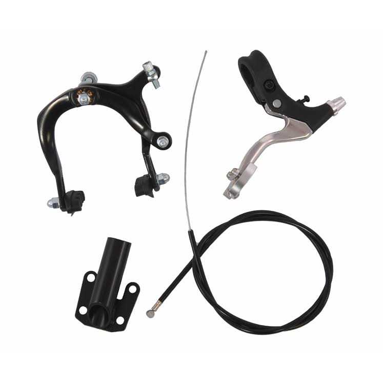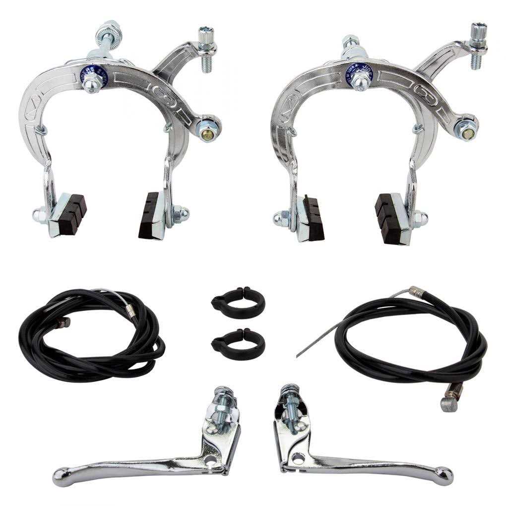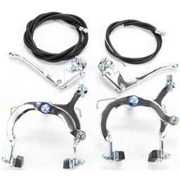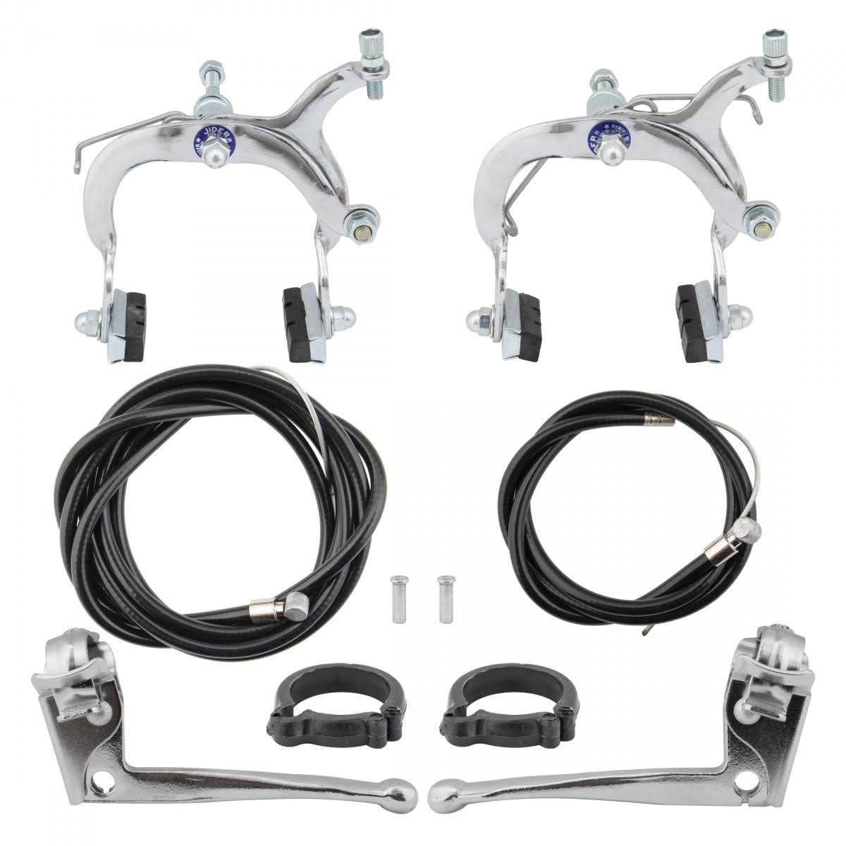 Inexpensive replacement set for mass merchant bikes. Complete W/lever, cable and housing. 65-80mm reach.