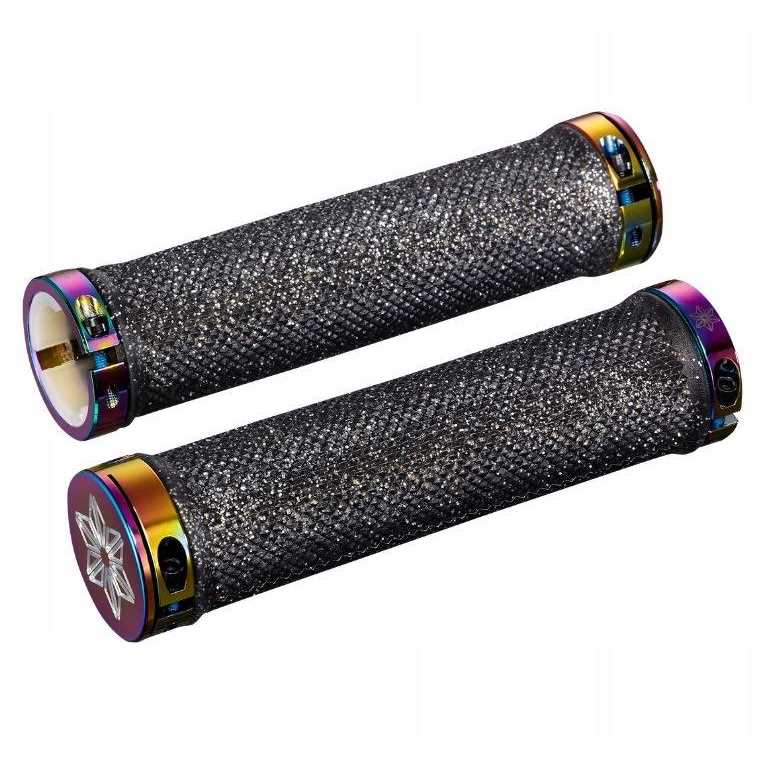 Supacaz Diamond Kush Locking Grips – Black with Oil Slick Rings – DK-07